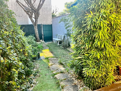 Quartier Garduère, proche Golf La Frégate et commerces, dans copropriété résidentielle calme sécurisée par portail automatique, villa club type T2 d'env.35m2 hab ( dont 26,60m2 Loi Carrez), comprenant au rez-de-chaussée : pièce principale avec coin cuisine aménagé et équipé, bureau, salle d'eau, wc séparés. Terrasse et jardinet. A l'étage : dégagement, une chambre avec placard. Un parking privatif