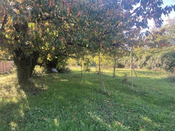 Avant cour + terrain clos et arboré sur l'arrière, avec une petite dépendance.