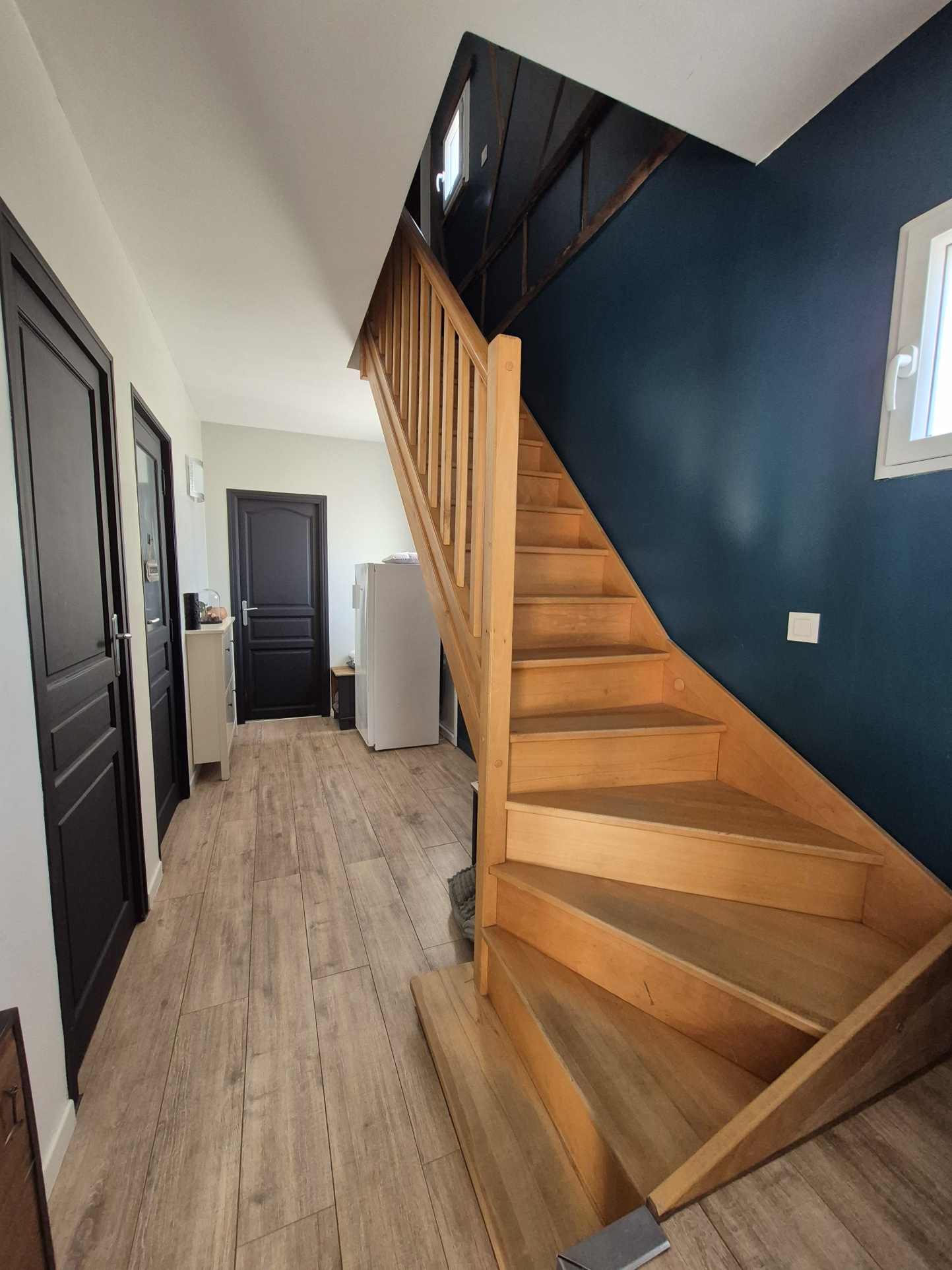 - Un premier palier distribuant deux chambres,un second palier avec point d'eau et wc menant à une troisieme chambre offrant à chacun son espace privé