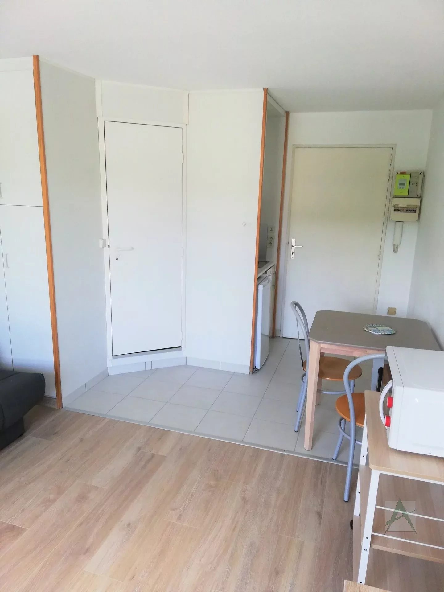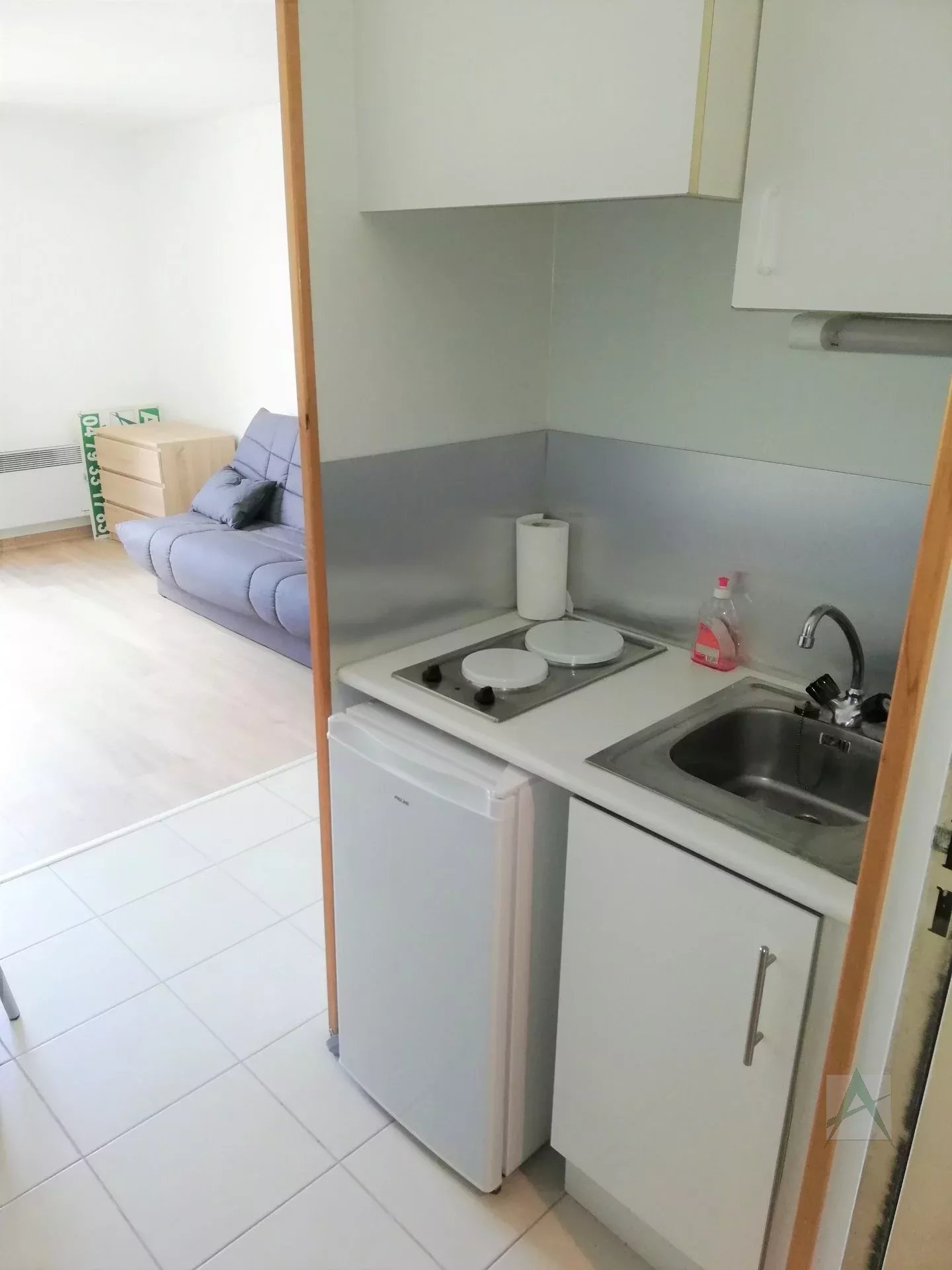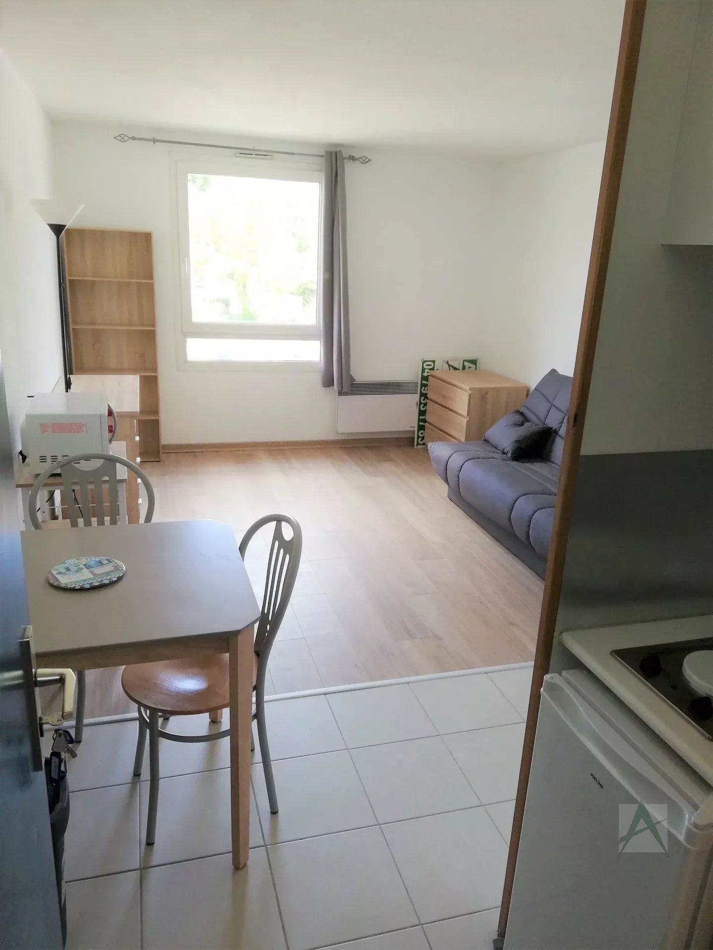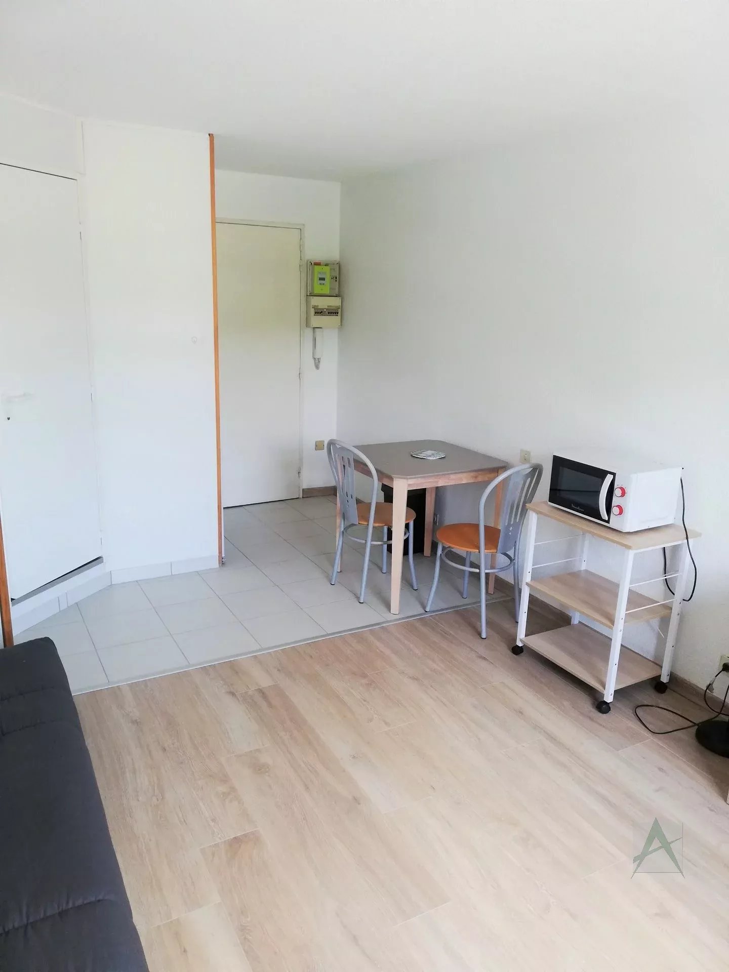 CHAMBÉRY, dans un immeuble sécurisé, un studio meublé de 18.92 m² au 2 ème étage avec ascenseur comprenant : une pièce principale avec coin kitchenette et une salle de douche avec wc. Studio lumineux. Arrêt de bus et commodités sur place. Libre. Etait loué 385 € + 45 €