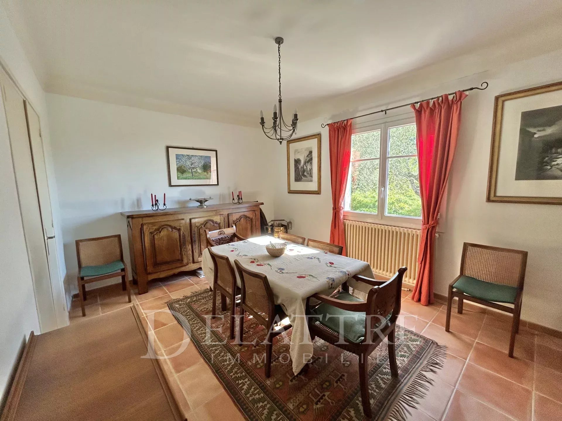 En position dominante,au calme,à cinq minutes des commerces et des écoles,au coeur d''un jardin de 2200 m² complanté d'oliviers centenaire,Propriété de charme de plus de 170 m² habitable avec son jardin plein sud sans vis à vis,séjour donnant sur une terrasse avec vue dégagée,cuisine équipée,salle à manger,quatre chambres dont une de plain-pied salle de bain, salle de douche,buanderie,cave, double garage.