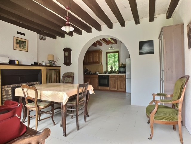 Au calme, sur un terrain de 2300 m2, cette propriété est composée de deux bâtiments. Le plus grand est une maison d'habitation de 130 m2 environ. On trouve au rez-de-chaussée, un salon avec une mezzanine, une cuisine ouverte sur une salle à manger, une chambre et une salle d'eau attenante. A l'étage, un couloir dessert trois chambre et une salle de bains. Une grande remise et une cave complètent cette bâtisse. Un pan de la toiture a été récemment refait ; l'autre est sain.