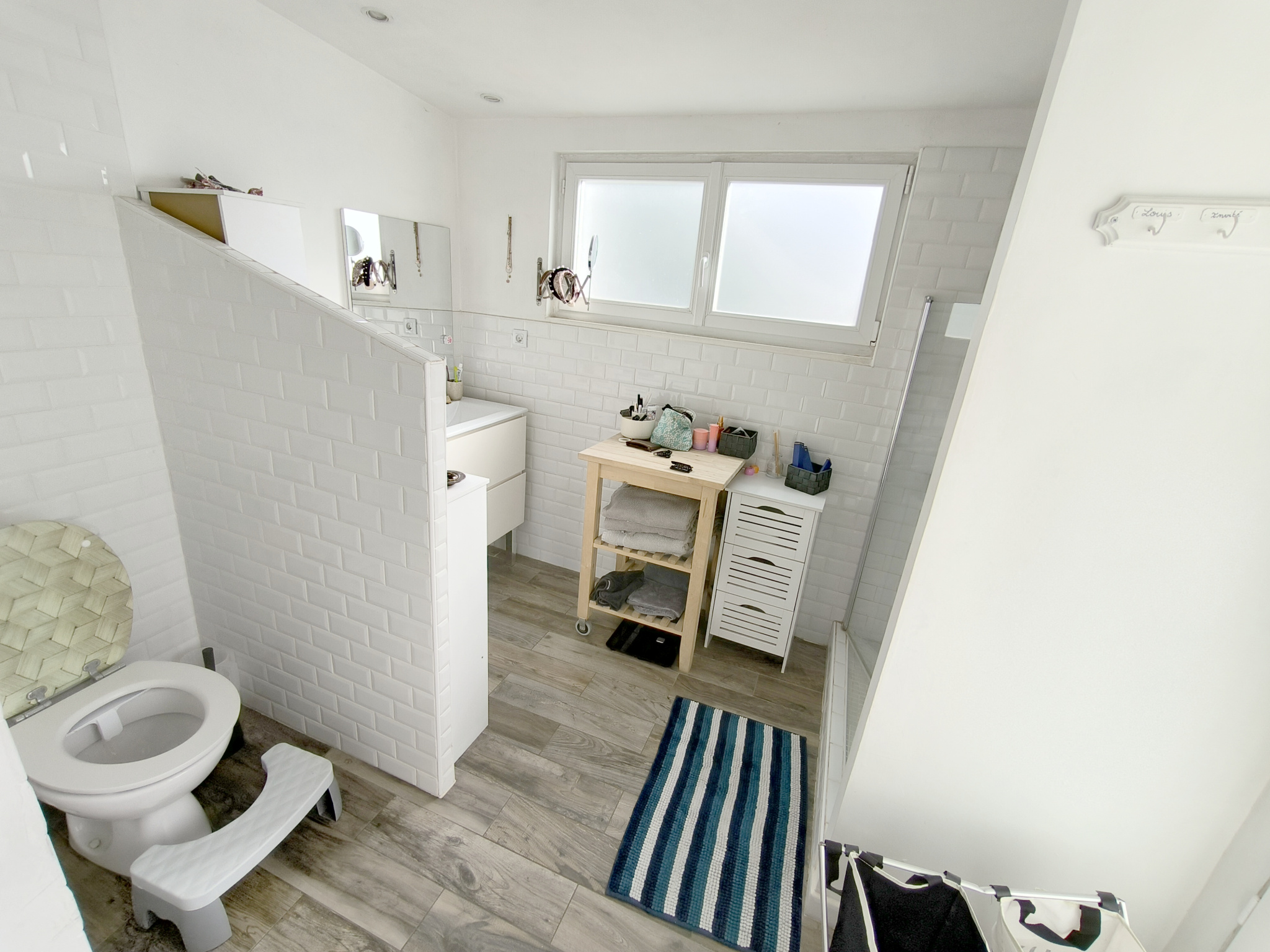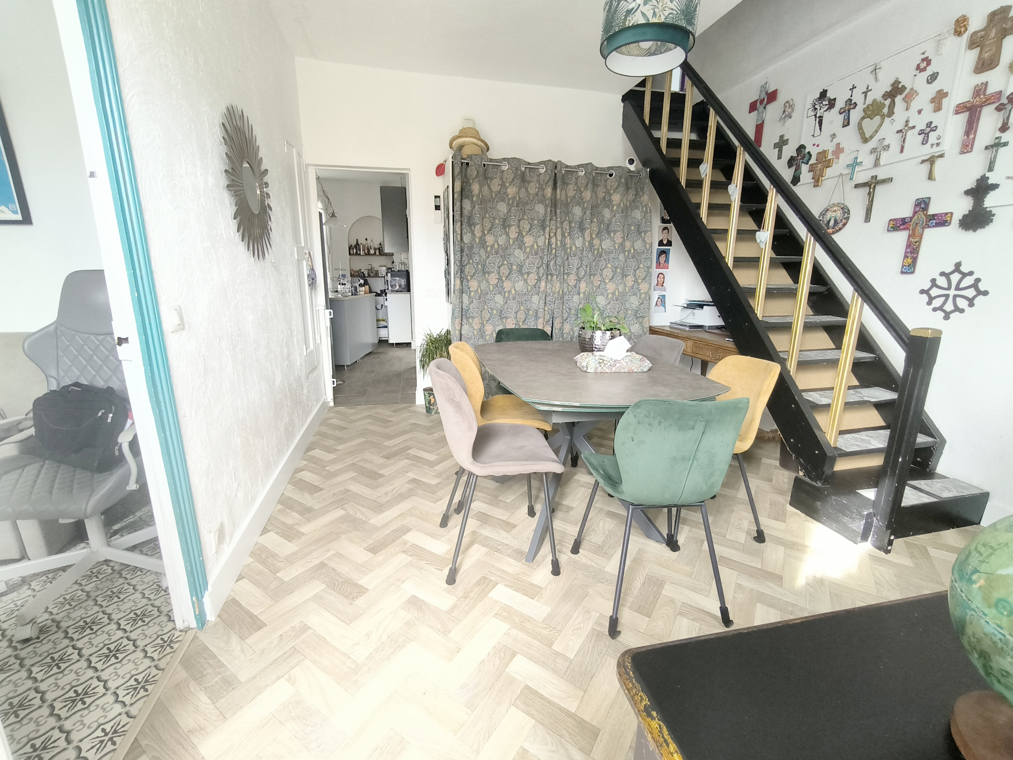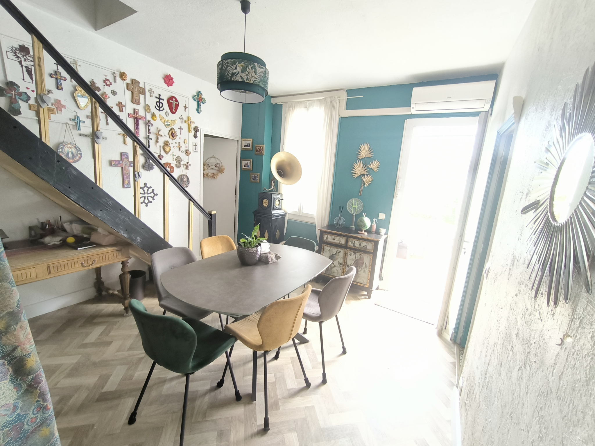 Une maison de ville avec le charme de la campagne Idéalement située à proximité du centre, cette maison allie confort moderne et authenticité. Au rez-de-chaussée, un séjour baigné de lumière s'ouvre sur une terrasse plein sud, parfait pour profiter des beaux jours. Un salon chaleureux avec cheminée, une cuisine fonctionnelle, un bureau ainsi qu'une chambre avec salle d'eau et toilettes complètent ce niveau. À l'étage, deux chambres sous combles, un espace rangement et une seconde salle d'eau avec toilettes offrent un agencement pratique et agréable. Atout supplémentaire : climatisation, stationnement aisé devant la maison et une grande cave pour répondre à tous vos besoins de stockage. Un bien rare qui conjugue proximité du centre et atmosphère paisible, à découvrir sans tarder