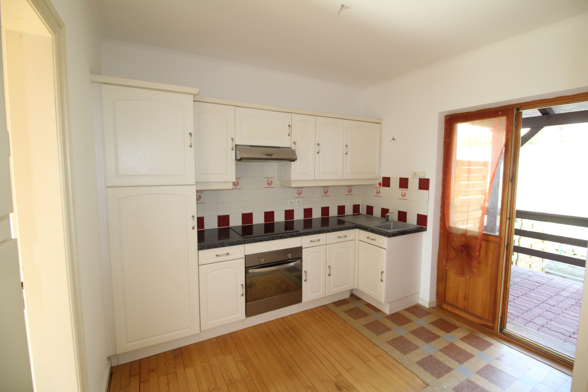 - au 1er étage, un salon, une cuisine équipée donnant accès à une Terrasse, une chambre, une salle de bain ( baignoire, WC) et un garage.