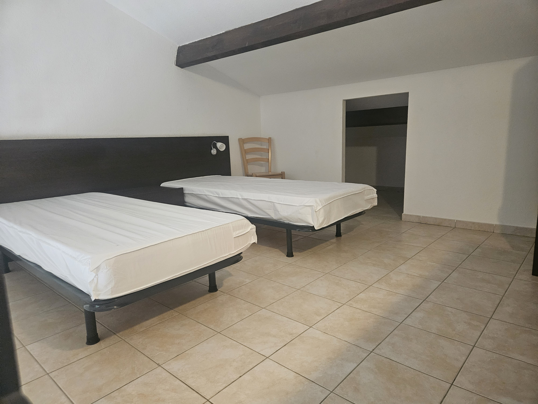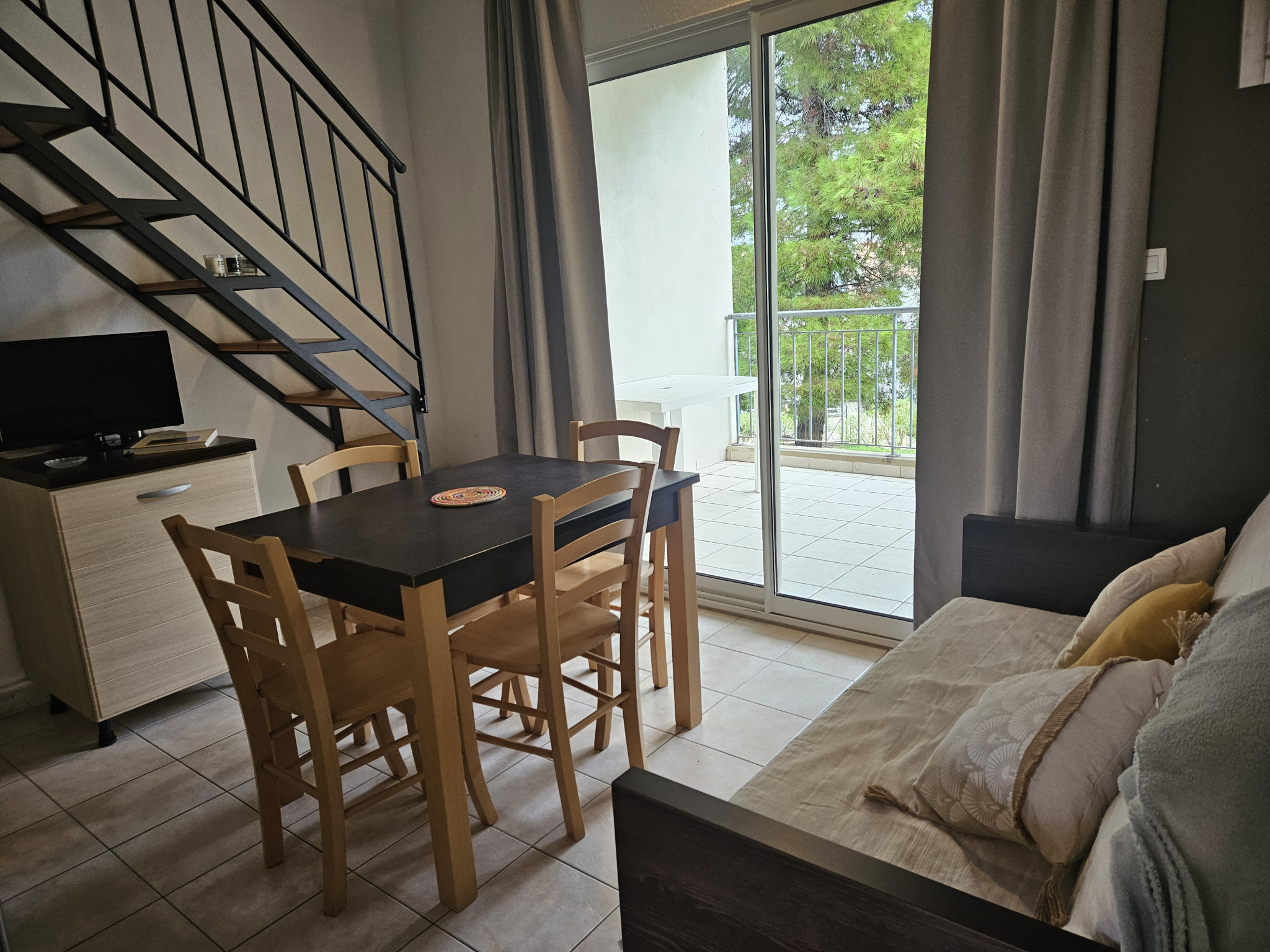 Un appartement de Type 3 comprenant deux chambres dont une en mezzanine, une salle d'eau, une pièce de vie et un espace cuisine équipé.