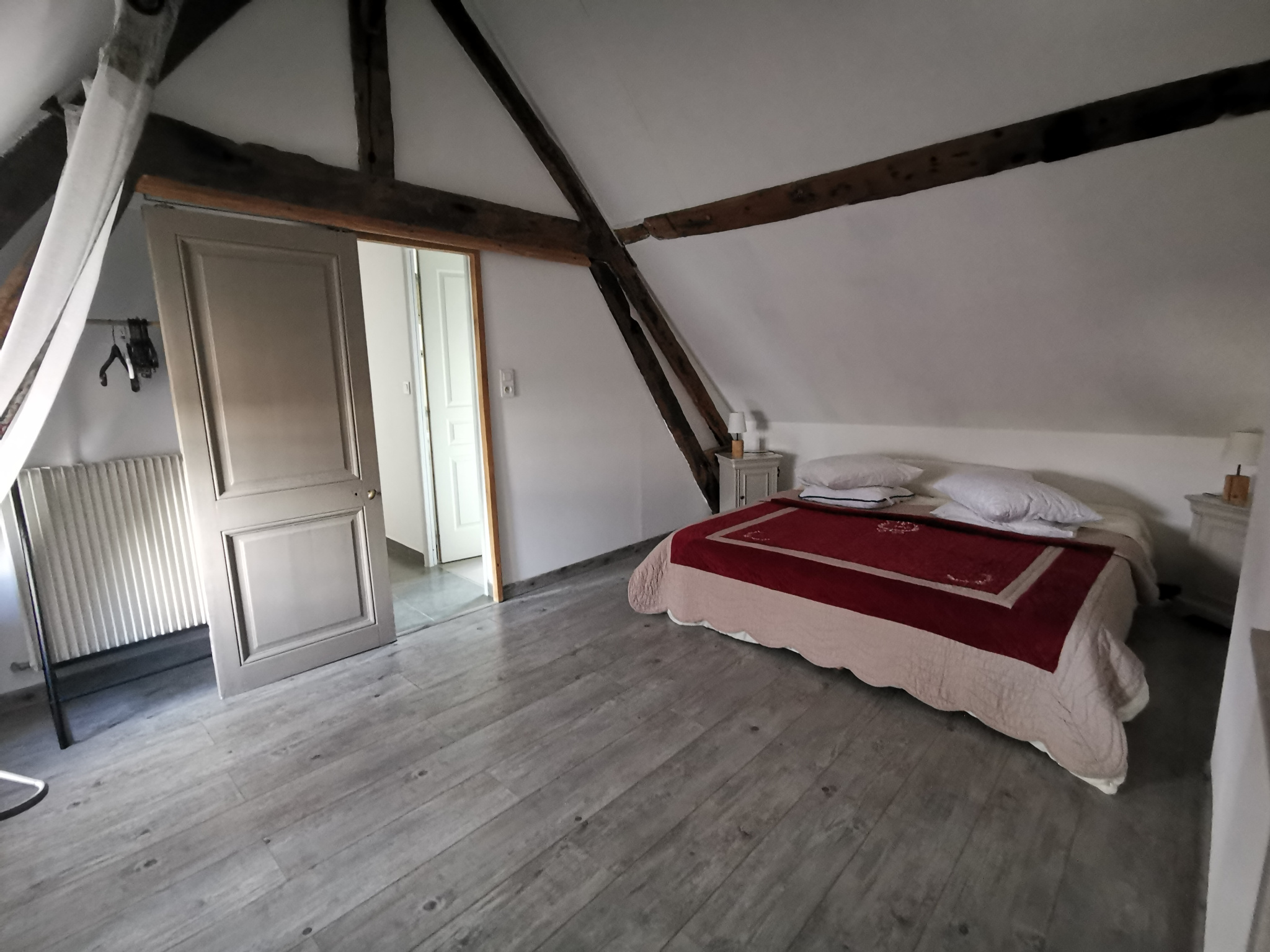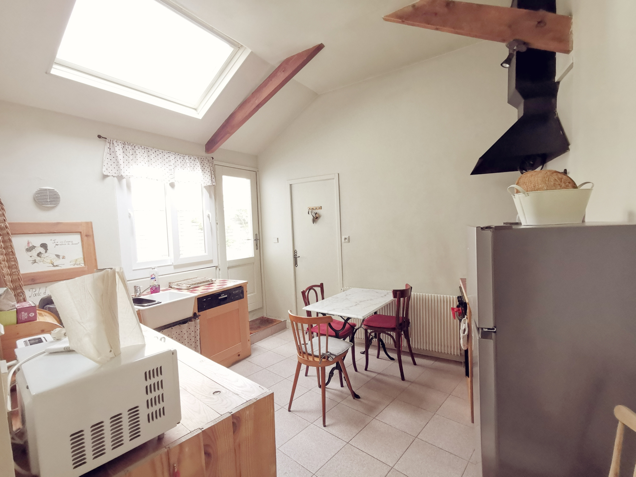 Au deuxième étage, un appartement T2 mansardé (Cuisine, salon, salle de bain, wc et une chambre) avec la posssibilité de réaliser rapidement deux grandes chambres.