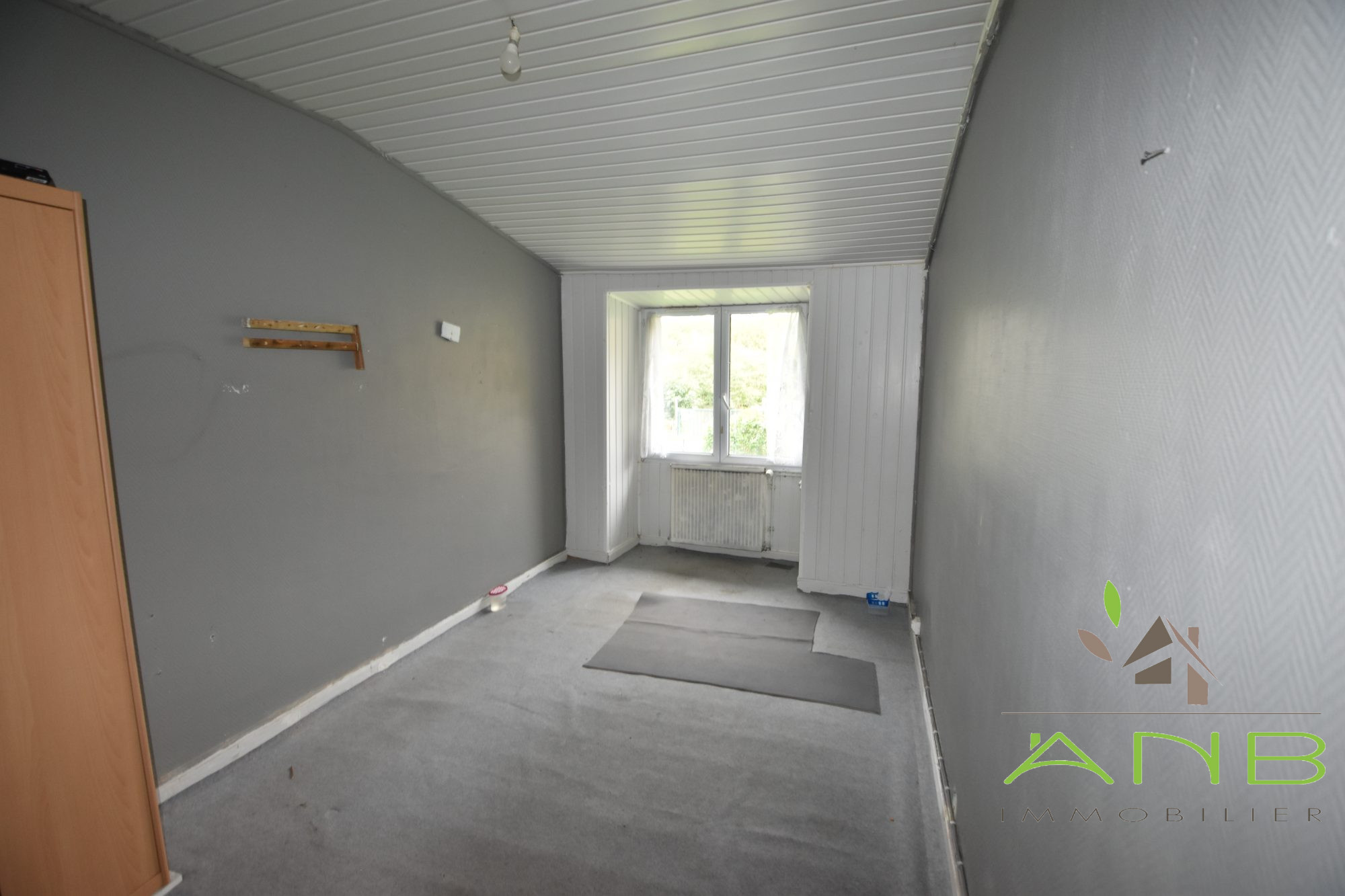 La maison offre 80 m² habitables comprenant un salon, une cuisine et trois chambres. Une salle de bain et un WC séparé complètent l'intérieur.
