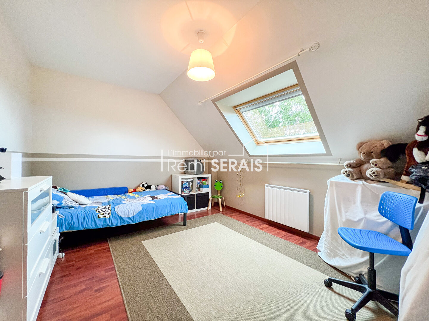 Au rez-de-chaussée, vous trouverez une entrée lumineuse, une cuisine aménagée et équipée ouverte sur un espace de vie convivial, une salle d'eau, ainsi qu'une chambre confortable. L'étage se compose de trois chambres supplémentaires et d'une salle de bains, offrant un agencement fonctionnel et agréable.