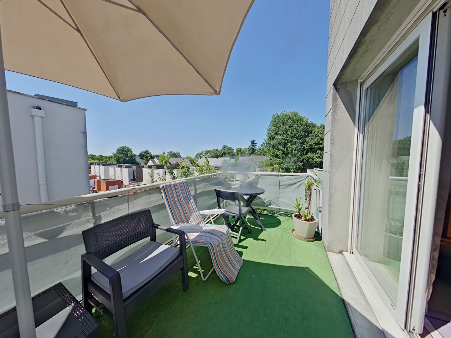 Spacieuse entrée avec rangements, séjour donnant sur balcon, cuisine équipée, 2 chambres, salle de bains et WC séparés.