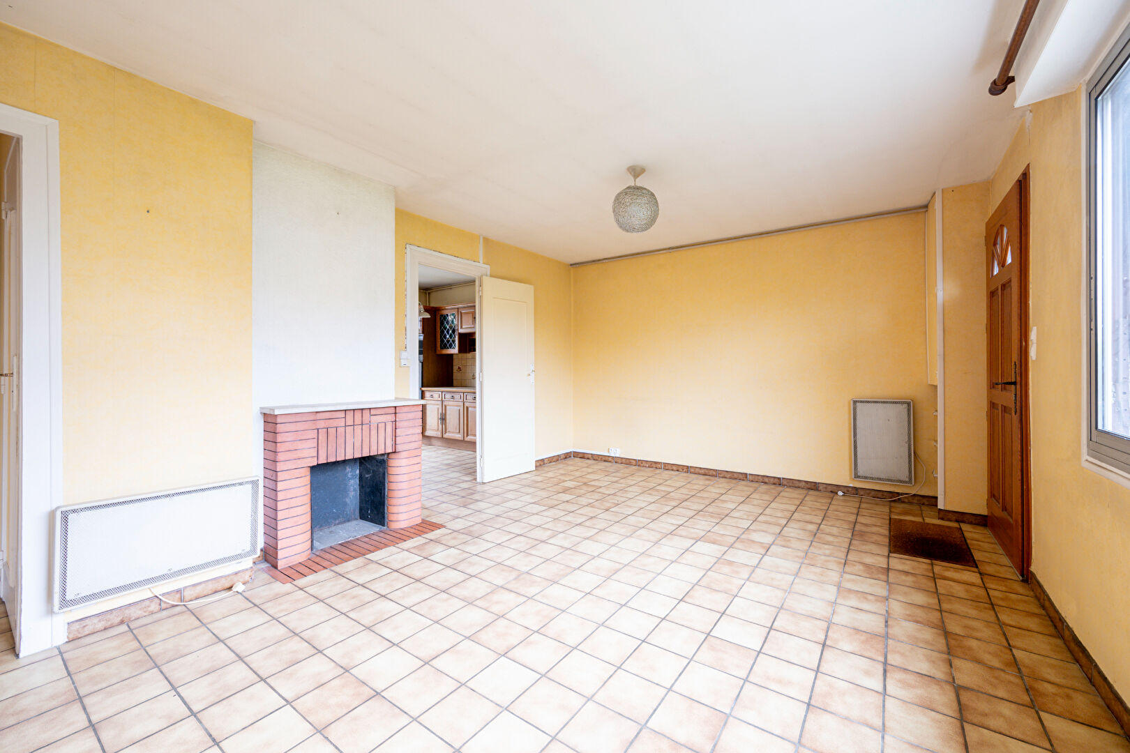 La maison des années 50, mitoyenne d'un côté se compose d'une pièce de vie, cuisine séparée et équipée, une salle d'eau, un WC et deux chambres confortables .