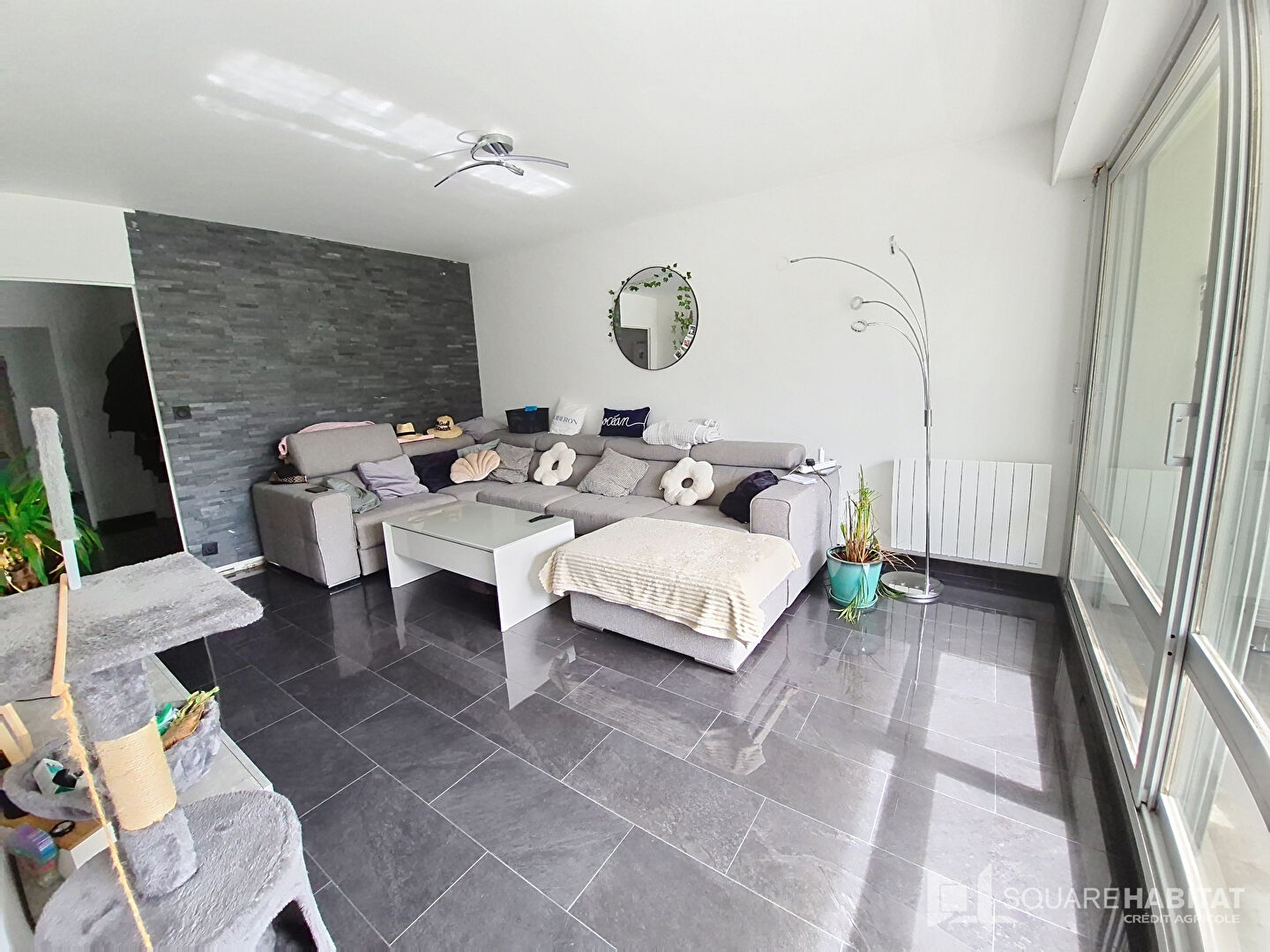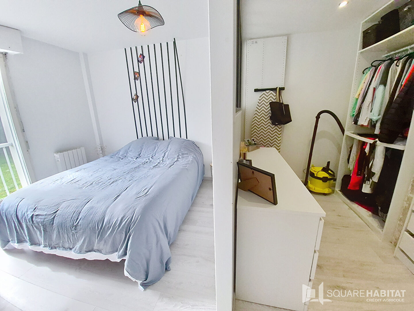 Une entrée, cuisine aménagée et équipée , salle d'eau, WC séparés, une chambre avec un grand dressing, une cuisine aménagée et équipée et un salon-séjour avec une loggia et sa vue dégagée., exposée sud.