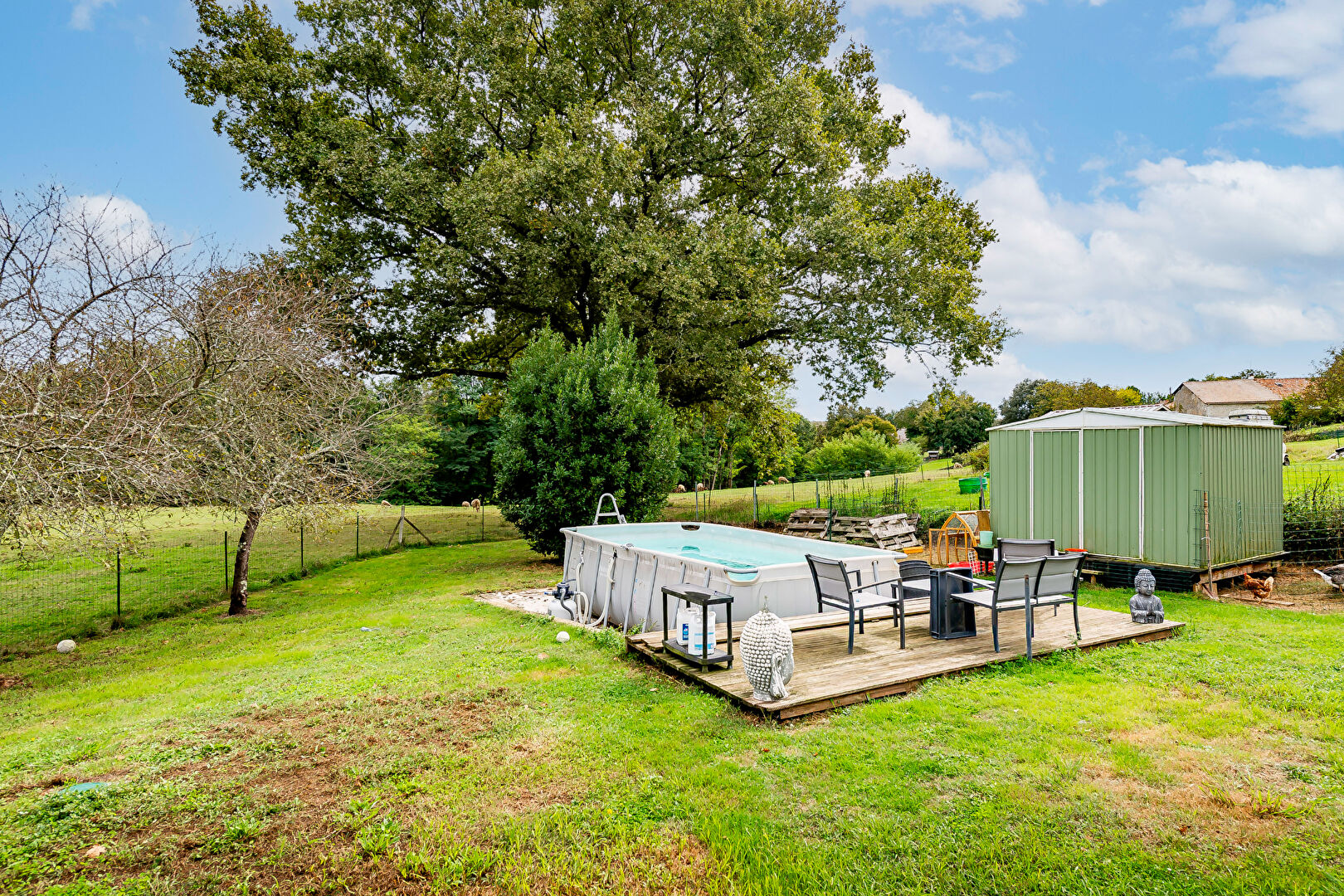 sur l arrière une terrasse couverte donnant sur un joli terrain avec piscine hors sol