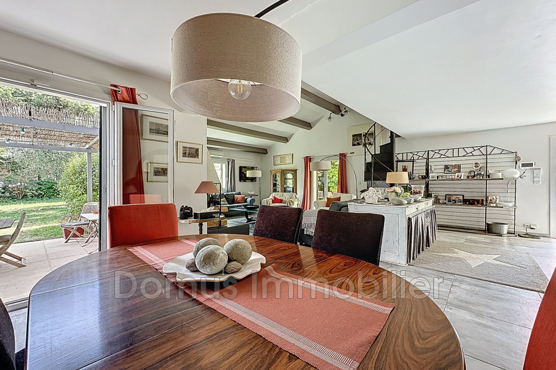 - Un vaste séjour avec coin salle à manger donnant accès à la terrasse et grand salon avec cheminée ouverte