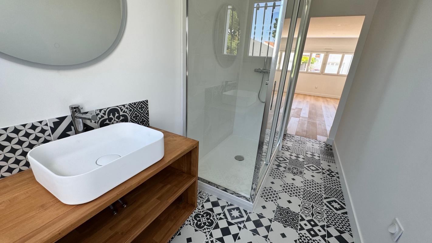 Elle comprend une entrée avec placard, une pièce de vie lumineuse de 34m² exposée Est/Ouest, une cuisine aménagée et équipée avec ilot central,une salle d'eau, un WC indépendant, 3 chambres dont une suite parentale de 23 m² avec sa salle d'eau.