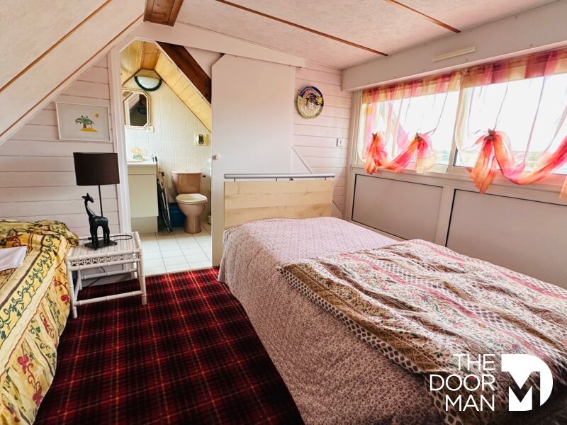 Ce bien rare se compose d'un grand séjour lumineux avec cuisine ouverte aménagée, d'une suite parentale avec salle de bain et WC, d'une salle d'eau supplémentaire et de WC séparés. À l'étage, deux chambres mansardées avec leur propre WC complètent ce duplex chaleureux et fonctionnel.