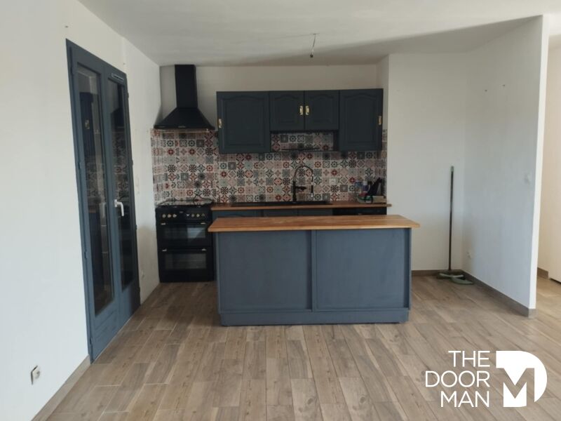 Grande pièce de vie avec cuisine ouverte, aménagée et équipée.