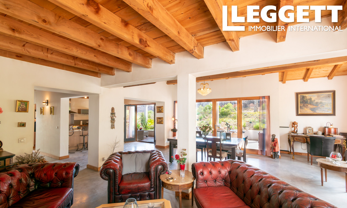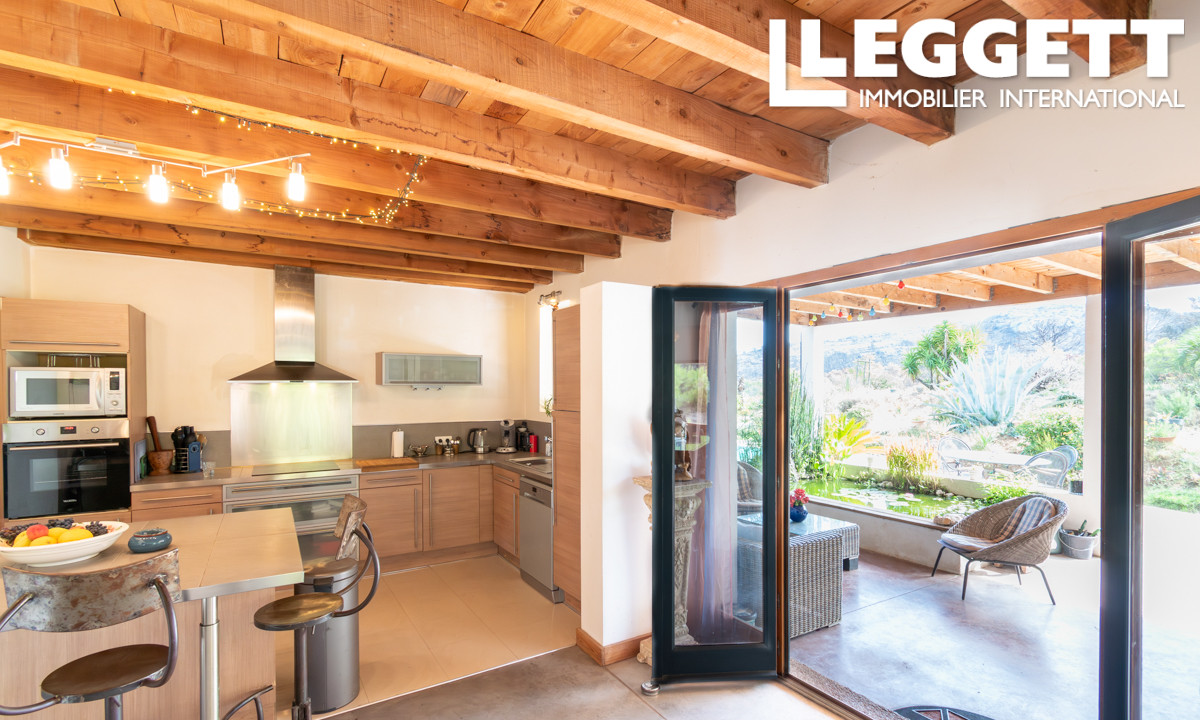 A39906JAV11 - Au coeur des Corbières, cette villa de plain-pied de 222 m² (2009), entièrement rénovée, allie confort, élégance et intimité avec une vue imprenable sur la vallée. Implantée sur 3 000 m² de jardin méditerranéen, elle offre un vaste séjour lumineux de 50 m², une cuisine ouverte, une bibliothèque et une suite parentale de luxe avec jacuzzi. Deux chambres supplémentaires ouvrent sur terrasses et piscine chauffée (11 x 5,5 m).