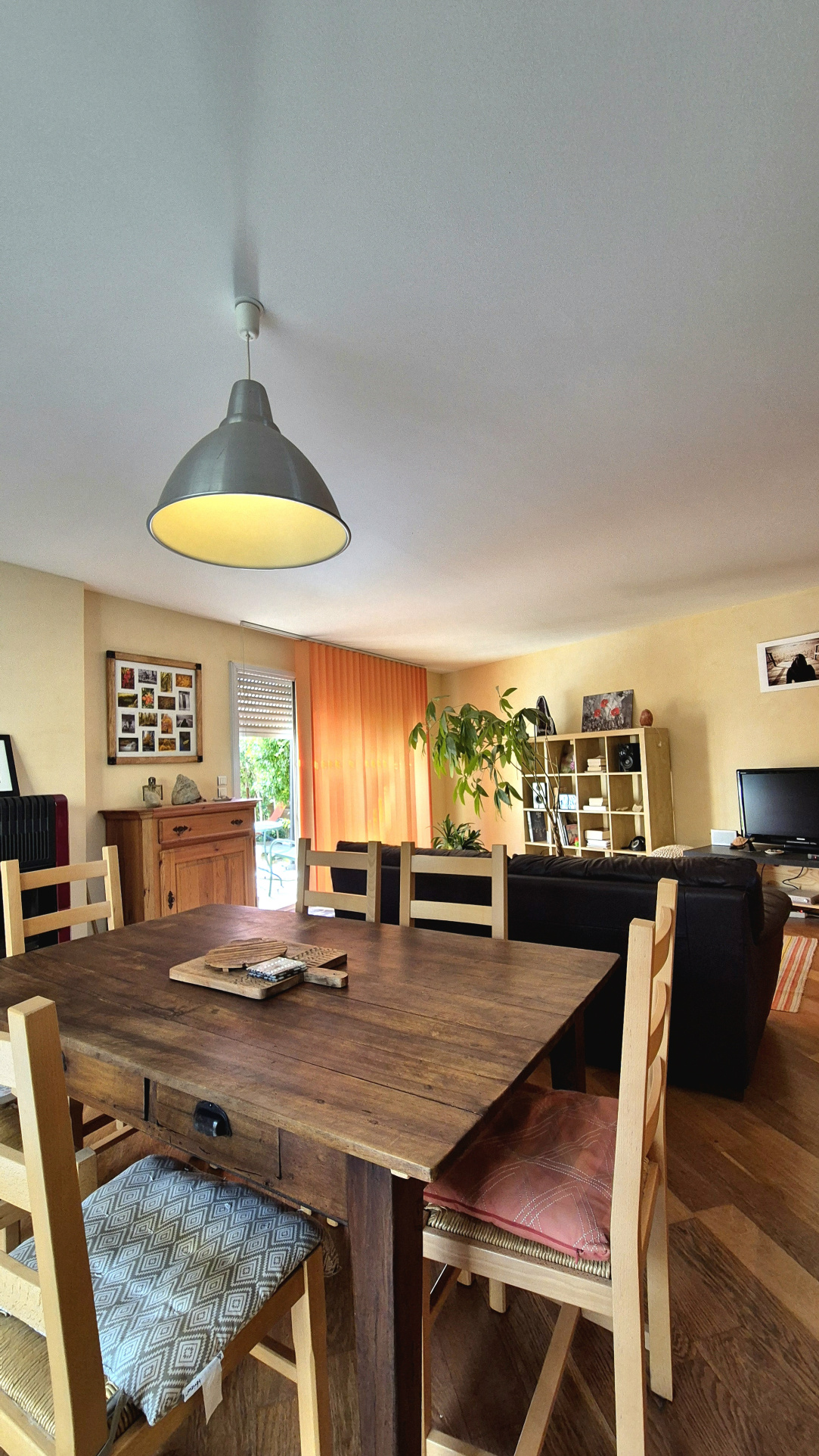 Avec mes 212 m2, j'offre une sensation d'espace rare en ville. Mon grand séjour traversant s'anime autour d'un poêle à pellets moderne, parfait pour des soirées d'hiver confortables et économiques. La cuisine, entièrement refaite en 2022, trône au centre des moments partagés : petits déjeuners pressés, dîners joyeux, confidences improvisées.