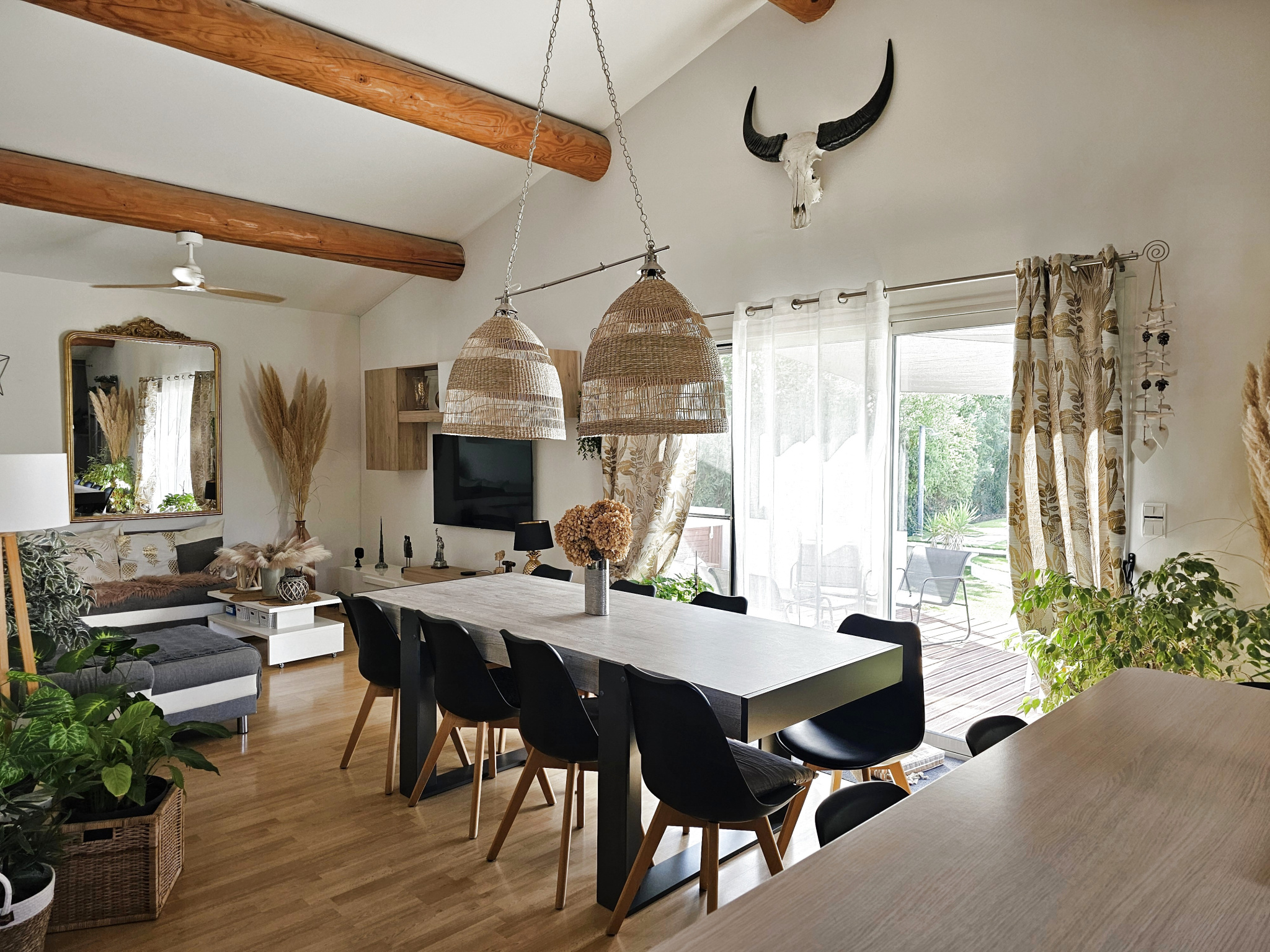 Extérieur: grand terrain de 890m2 arboré, piscine, espace terrasse /détente, un mobil home pour accueillir vos amis, famille tout équipée .