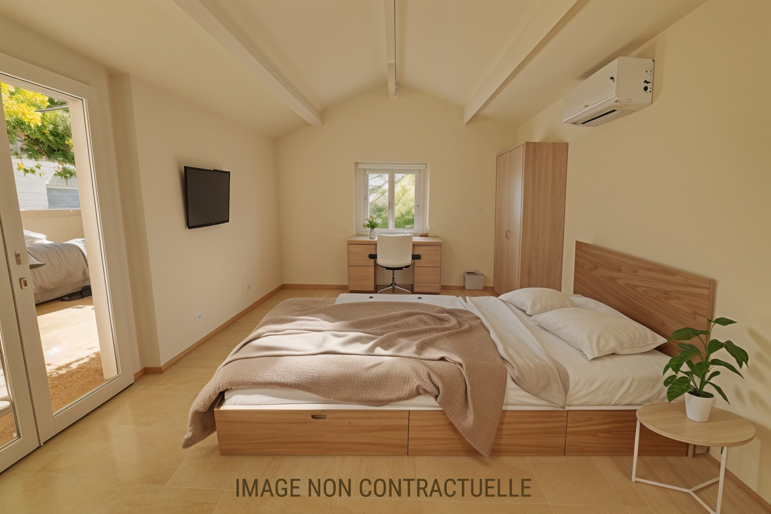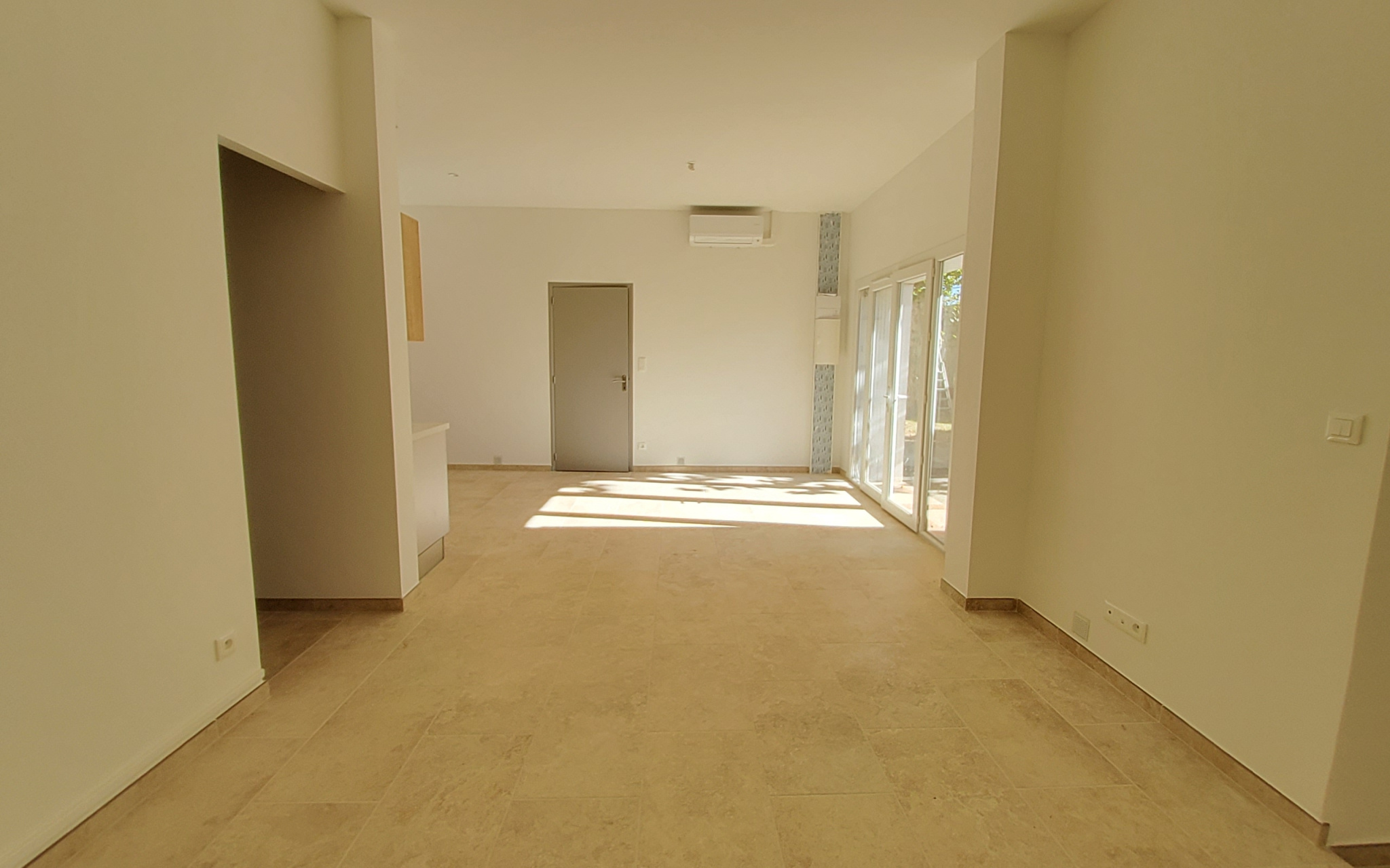 Il se compose d'une agréable pièce de vie climatisée et lumineuse avec cuisine ouverte aménagée et équipée, de deux grandes chambres climatisées dont une avec salle d'eau privative, d'un dégagement, d'une seconde salle d'eau et d'un WC indépendant.