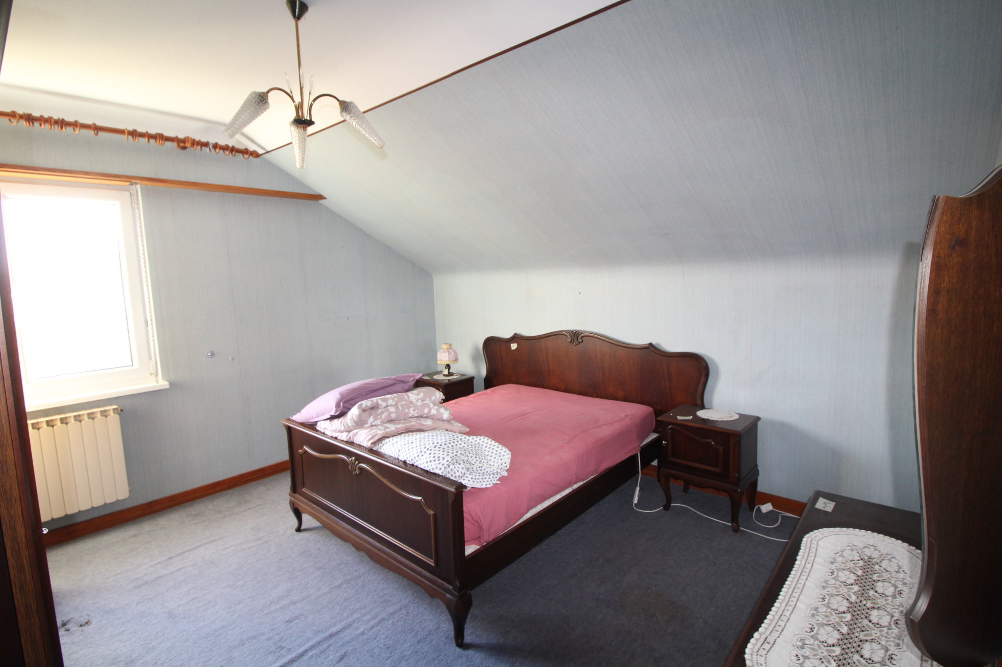 A l'étage se trouvent quatre chambres (dont une en enfilade) et une salle de bain (baignoire, lavabo et WC).