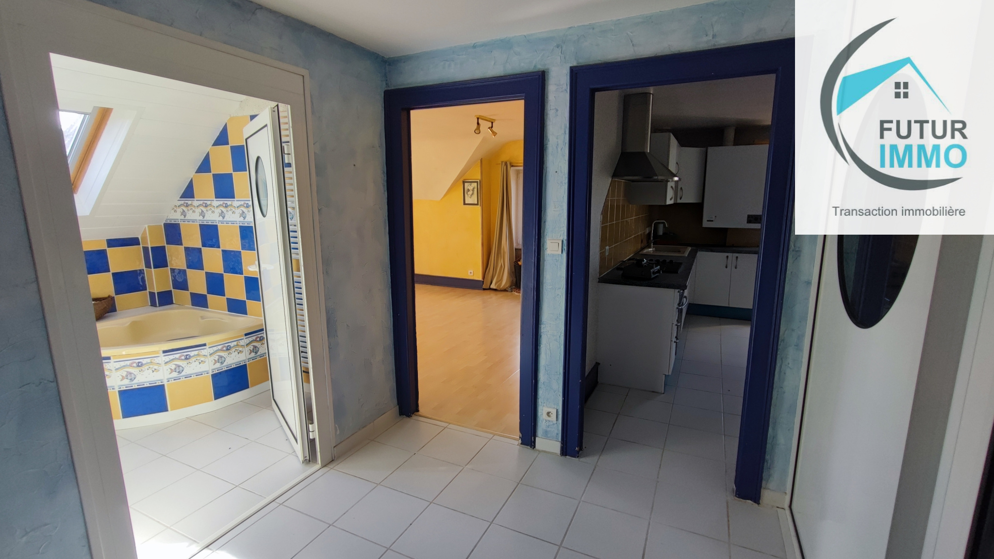 Entrée en duplex par escalier - Hall desservant Cuisine équipée et séparée - Salon/séjour - Salle de bains - 2 Chambres - WC