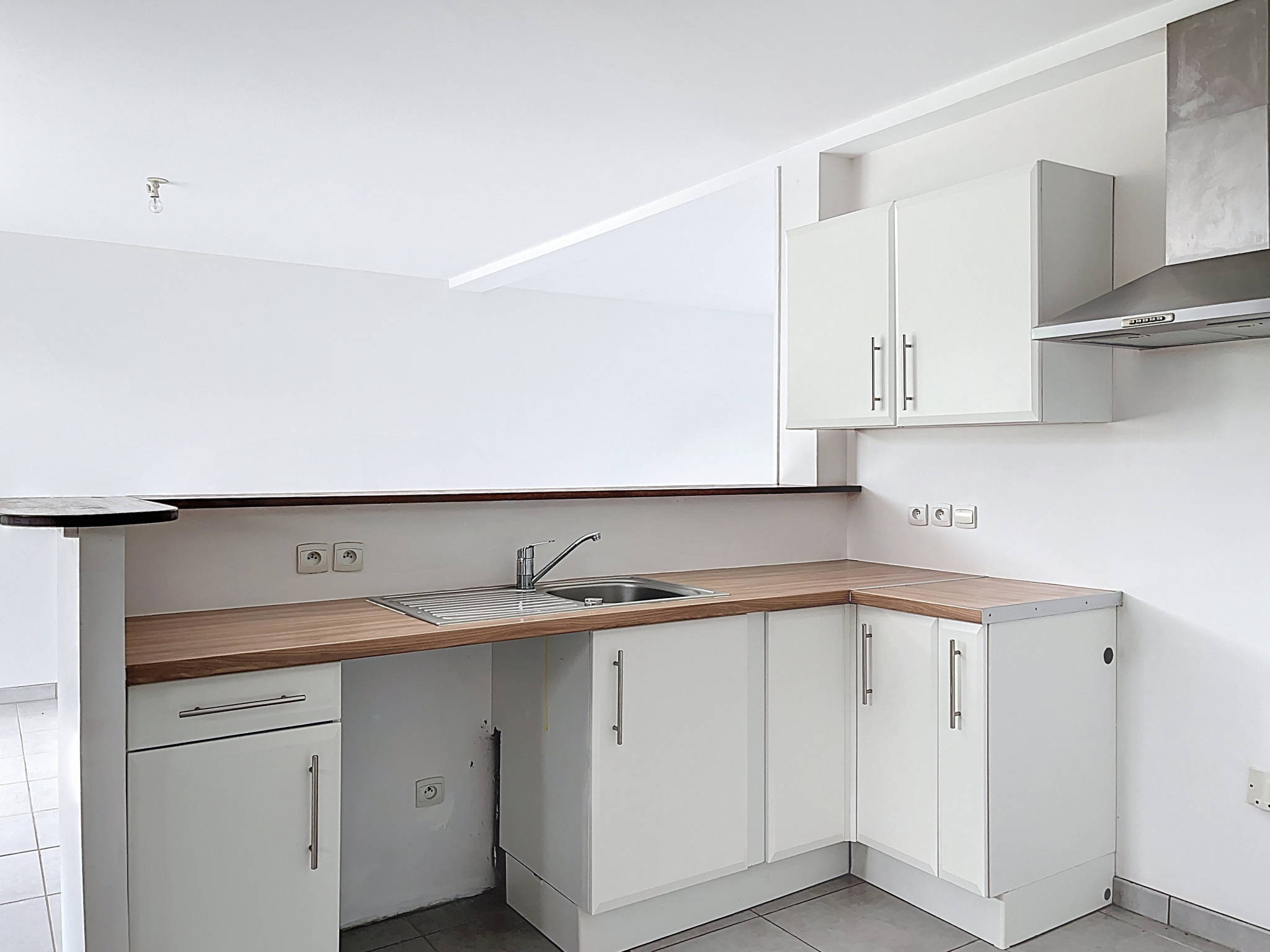 La cuisine, ouverte sur le séjour, s'intègre dans une pièce de vie traversante et chaleureuse, baignée de lumière naturelle grâce aux ouvertures à double vitrage et aux portes-fenêtres coulissantes donnant accès à l'extérieur.