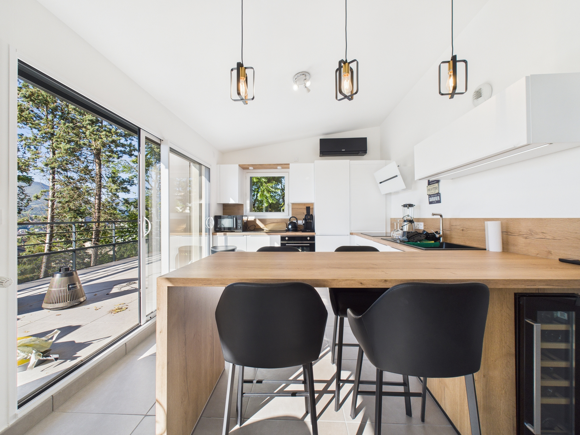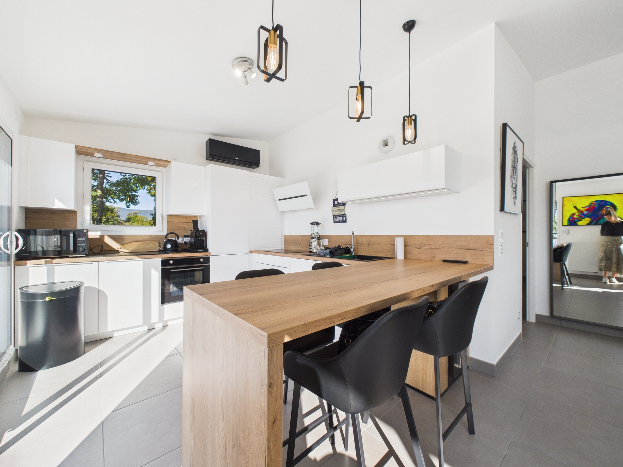 L'espace de vie de 39 m2, baigné de lumière, s'ouvre sur une terrasse de 28 m2 offrant une vue imprenable sur le massif de Belledonne   un véritable tableau naturel à admirer au quotidien.