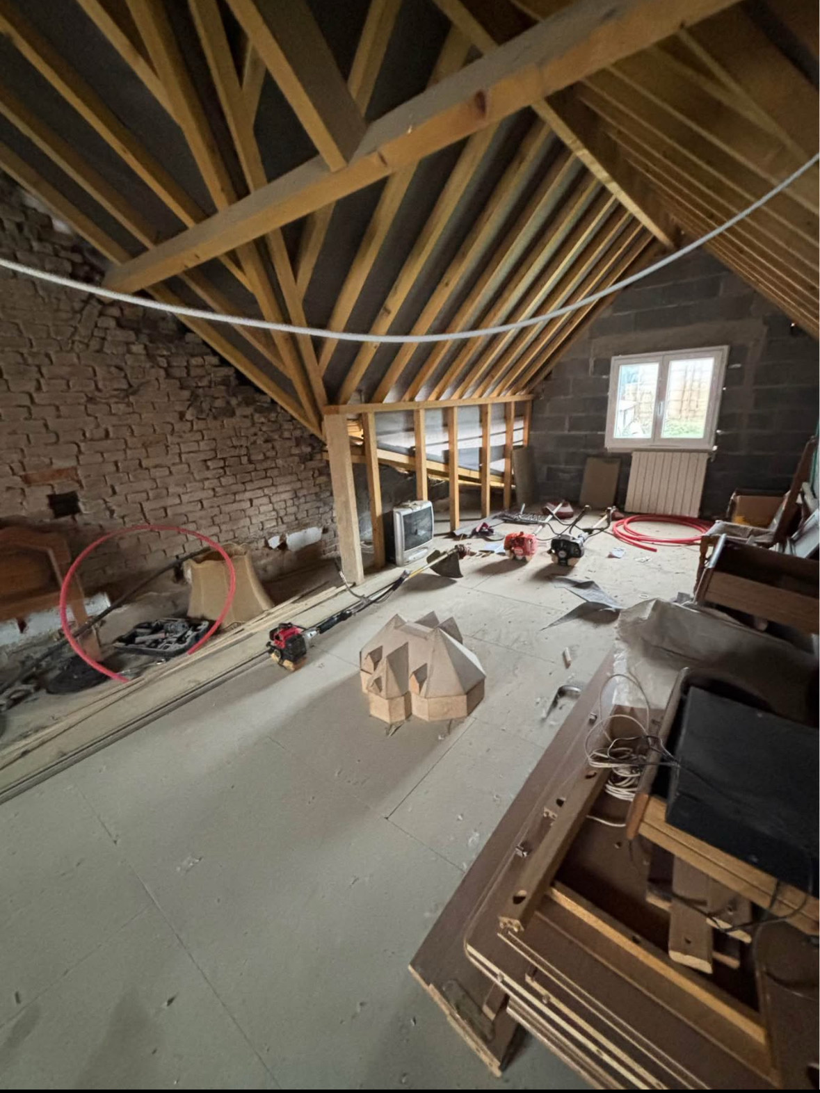 A l'étage des combles aménageables d'environ 100 m2 possibilité de realiser trois chambres , un wc , une salle de douches.