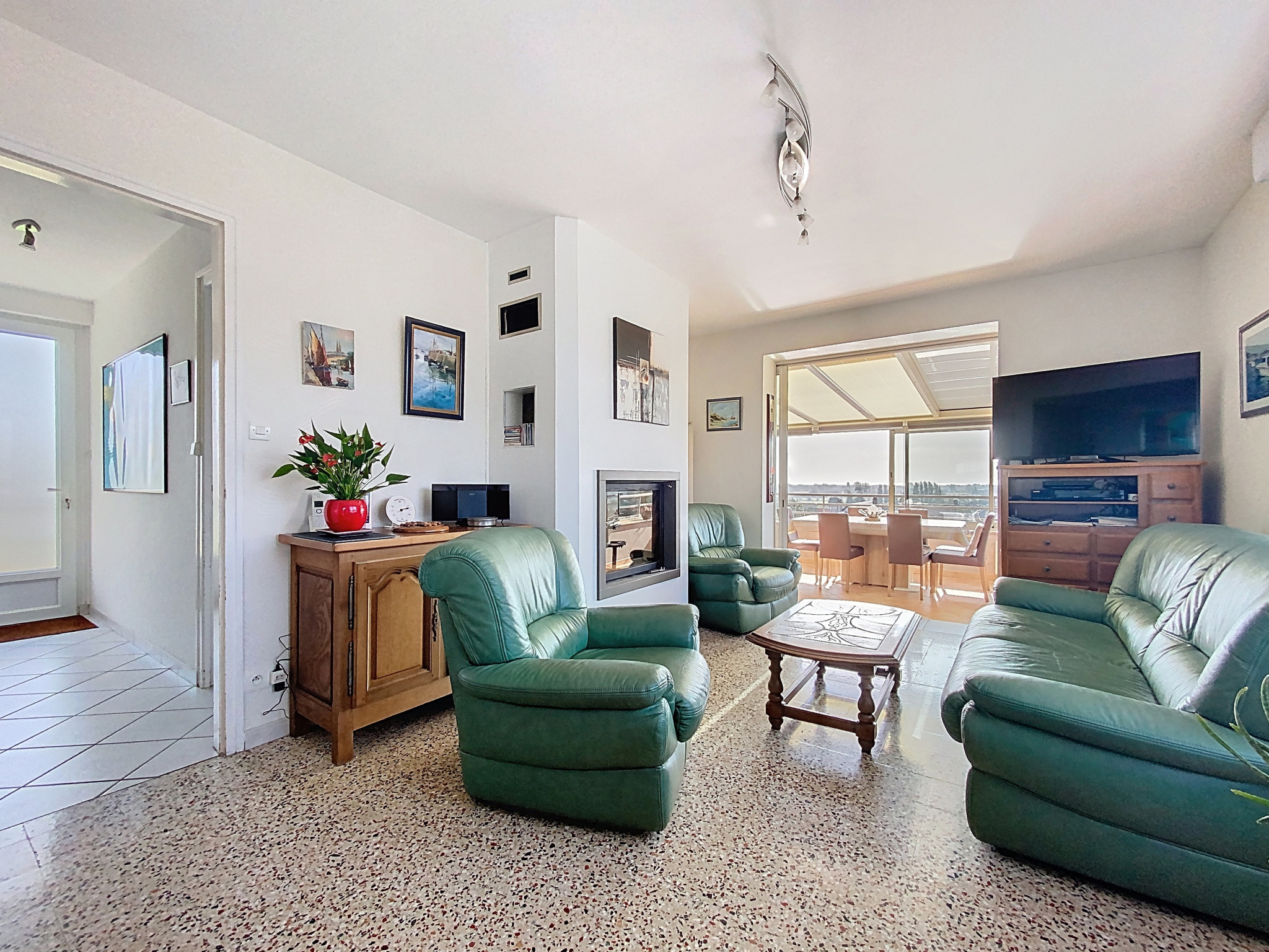Séjour/salon lumineux avec cheminée;