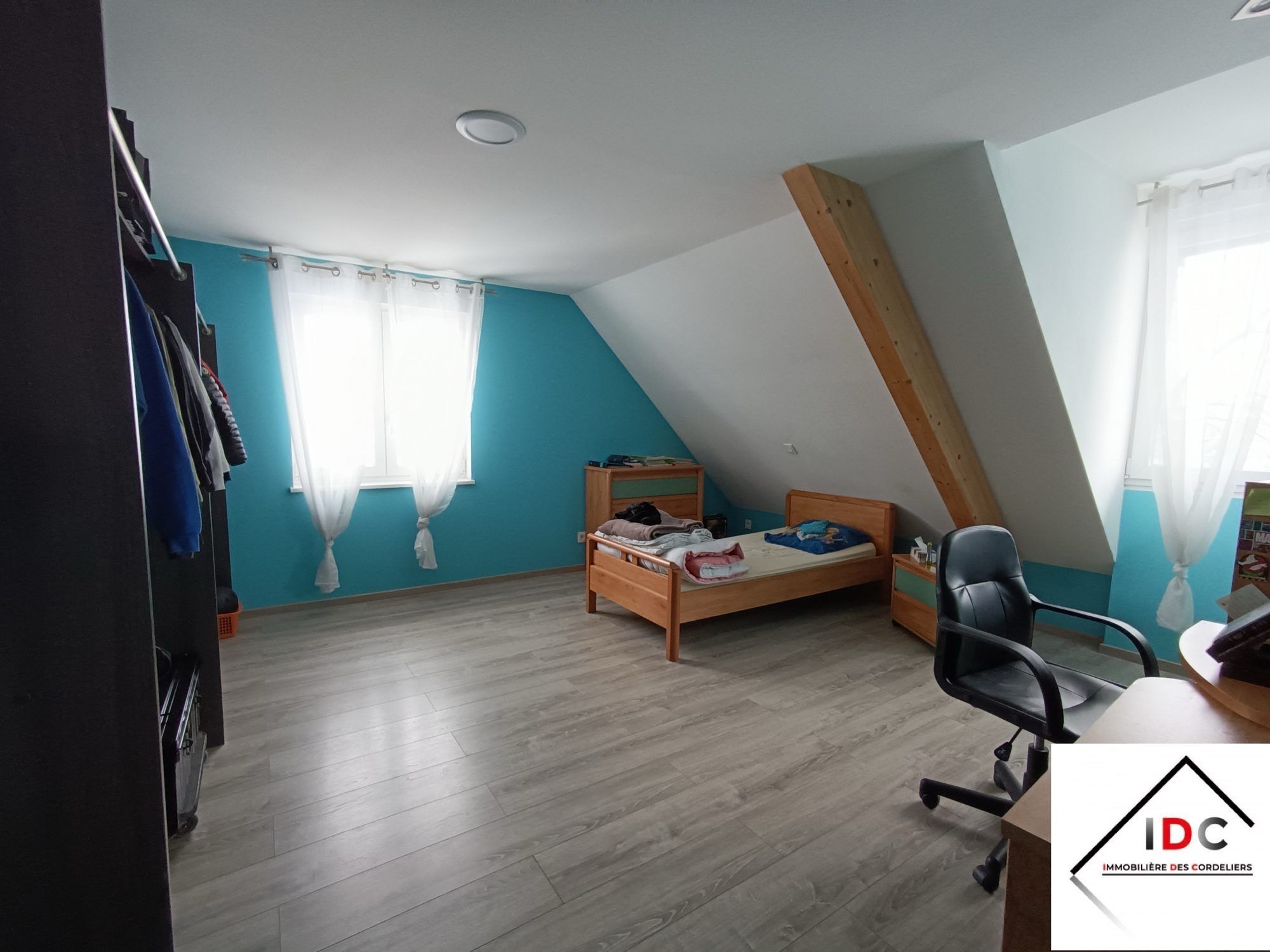 A l'étage vous trouverez 3 chambres spacieuses, une salle de bain avec douche italienne et double vasque, un WC suspendu et aussi une cuisine équipée et espace séjour. Une chambre/bureau sous les combles vous apportera un espace supplémentaire.