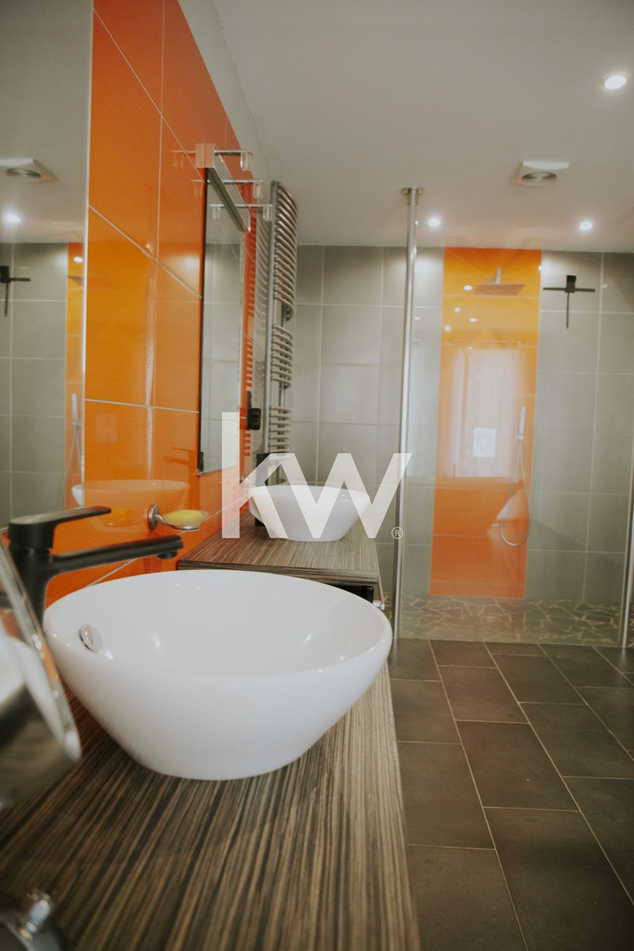 Une cuisine équipée, buanderie, WC, sdb 15 m² (baignoire + douche italienne).