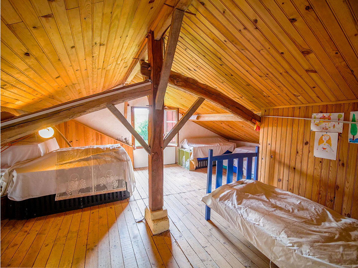 À l'étage : une chambre mansardée façon dortoir, idéale pour accueillir famille et amis