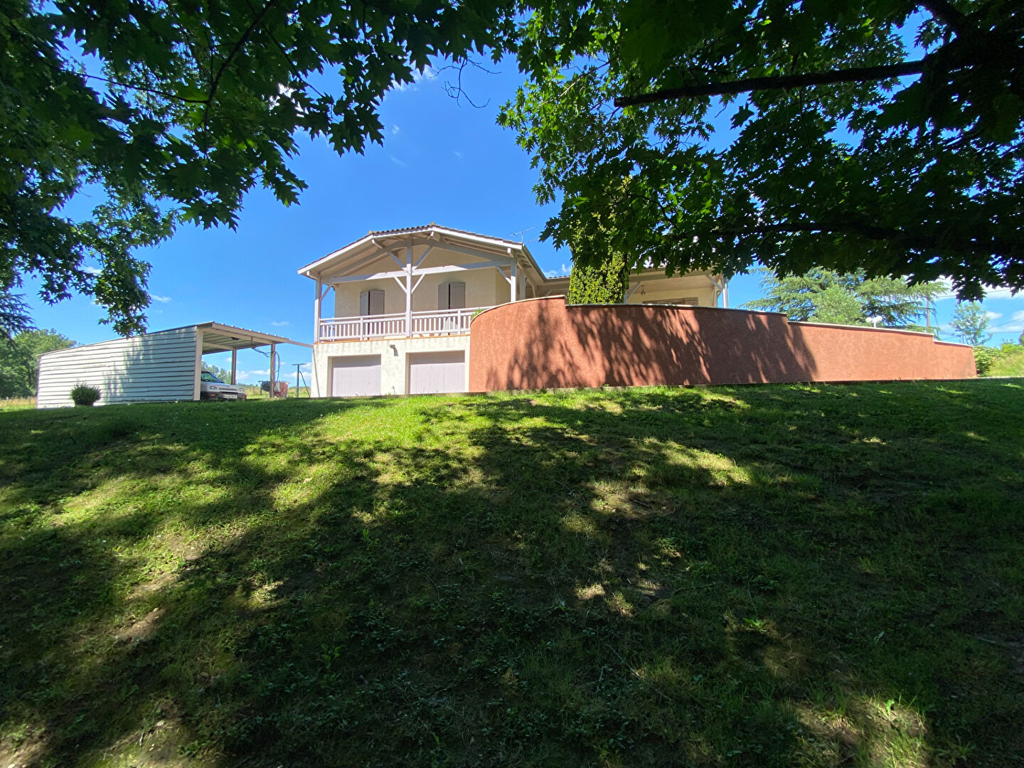 A Villeneuve/Lot, proche du golf de Castelnaud de Gratecambe, magnifique maison sur sous-sol d'environ 124 m² très bien entretenue avec garage, piscine, le tout sur un joli parc d'environ 7990 m² (dont une partie constructible) et un petit coin pêche.
