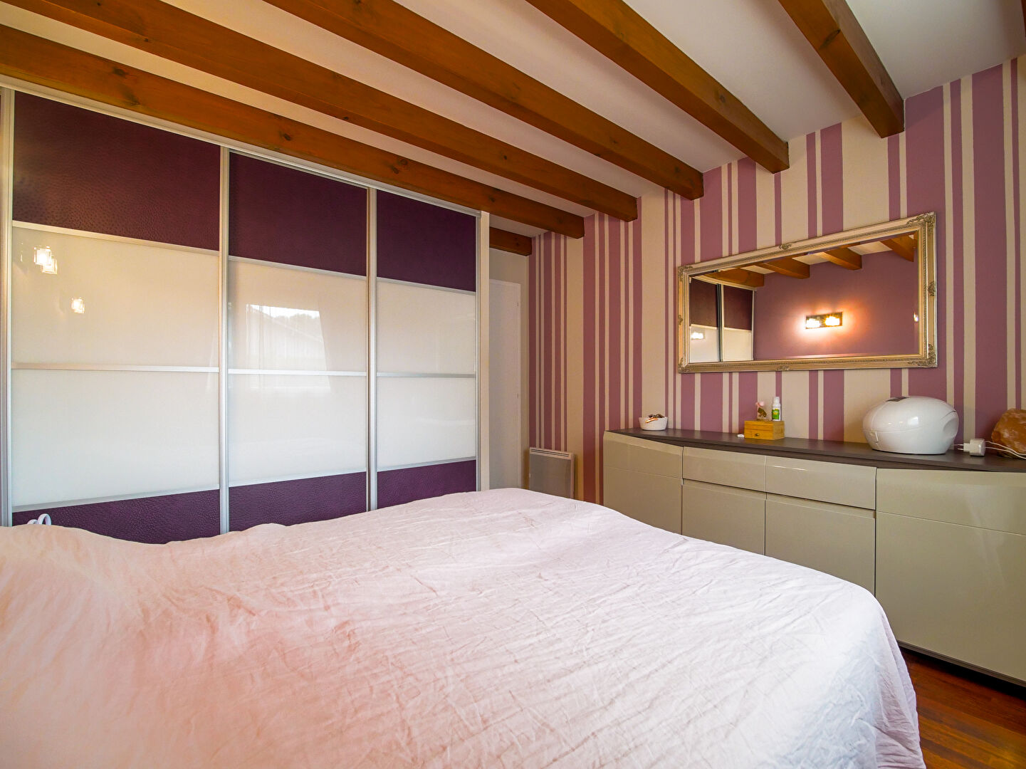 L'espace nuit se compose de 4 chambres confortables, idéales pour accueillir toute la famille, et de 2 salles d'eau, pensées pour le confort quotidien. La disposition de la maison permet de concilier vie familiale et intimité, avec des espaces parfaitement optimisés.