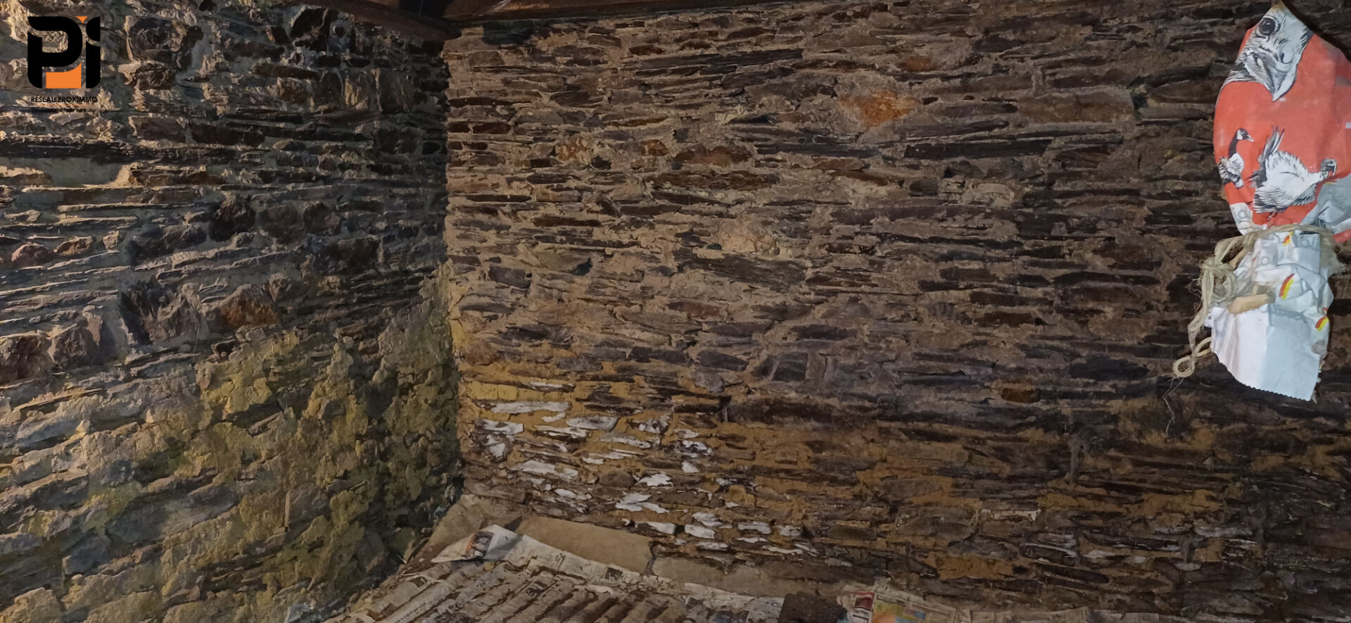 Gros oeuvre sain : murs en pierre, conduits de cheminée existants,