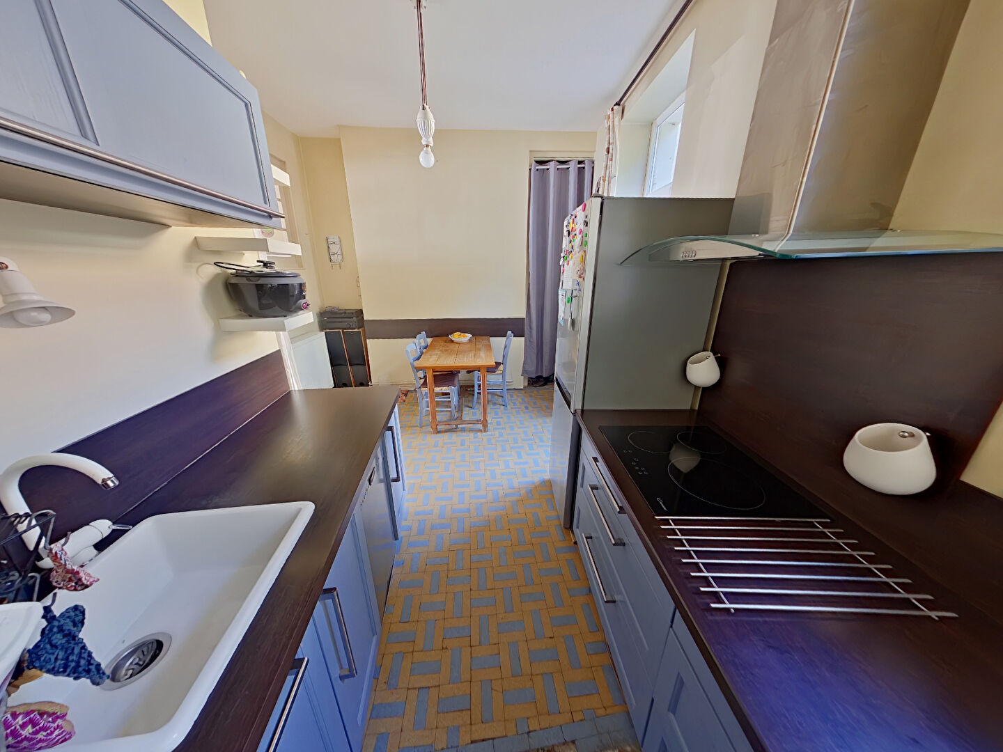 La cuisine aménagée, fonctionnelle, s'ouvre sur une belle terrasse et un jardin intimiste, entièrement clos de murs, garantissant tranquillité et convivialité.