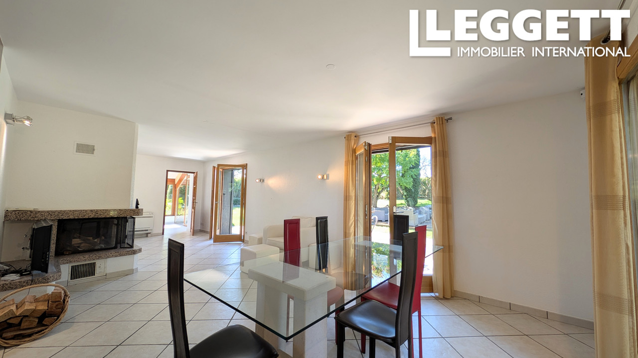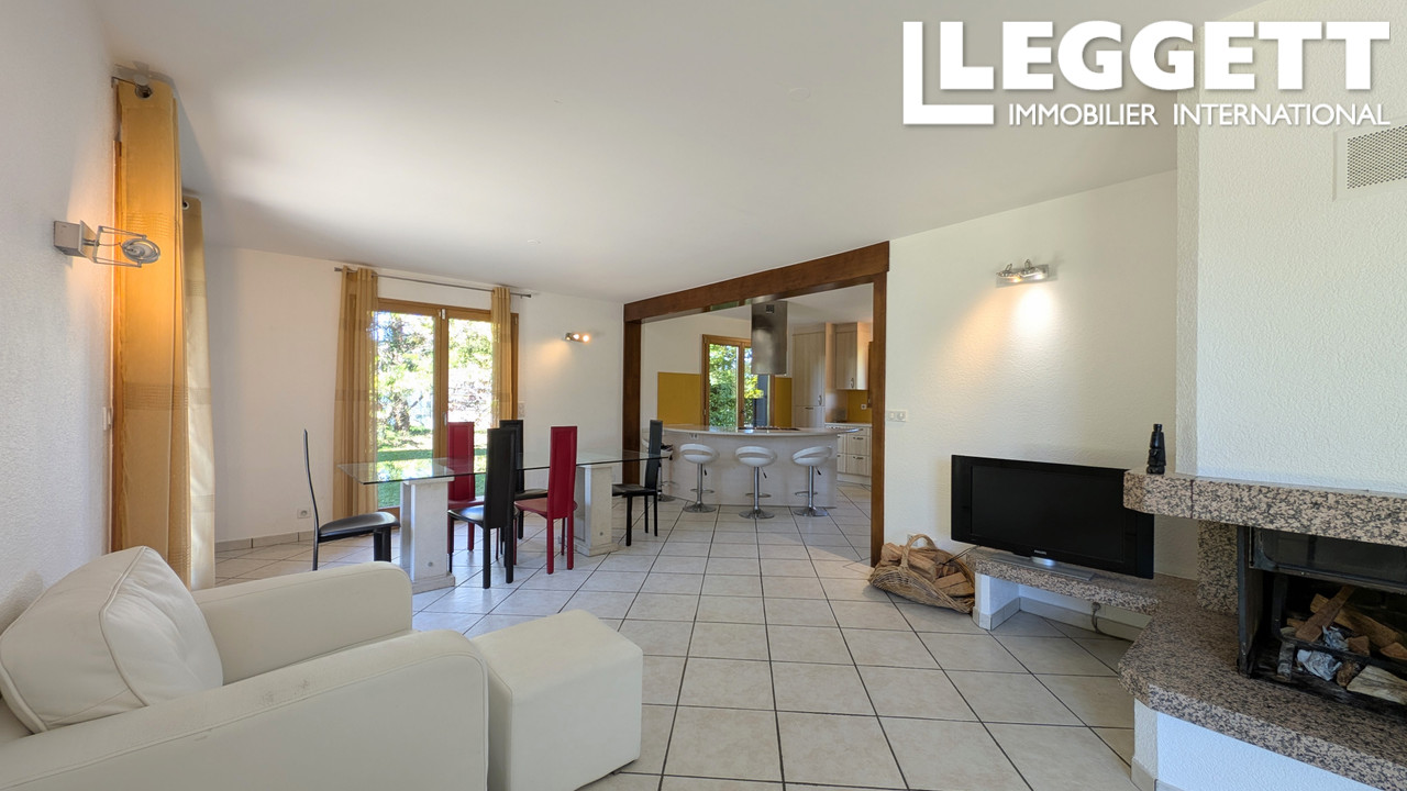 La maison comprend une cuisine ouverte aménagée et équipée, un salon/salle à manger avec cheminée, une véranda/bureau, une suite parentale avec salle de bains, 2 chambres et 2 salles d'eau supplémentaires.