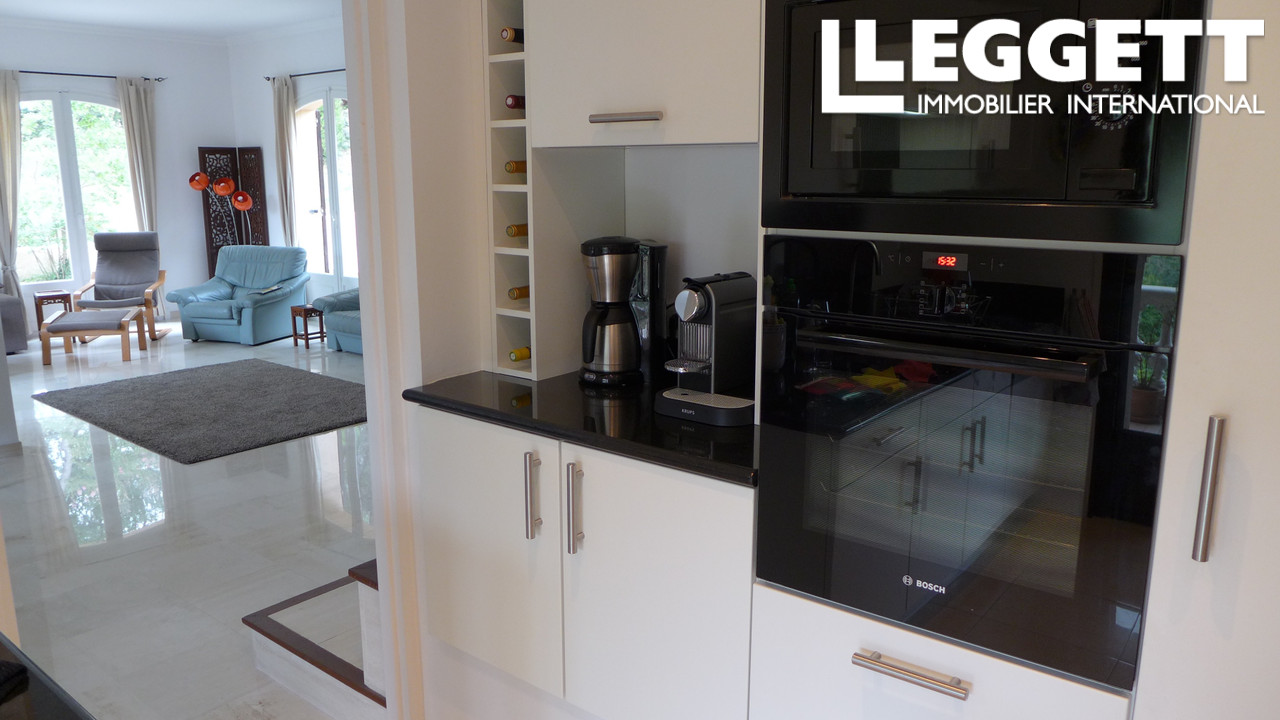 La villa propose 9 pièces sur 3 niveaux comprenant : entrée, salon et salle à manger climatisés avec cheminée, cuisine moderne, 5 chambres climatisées, 4 pièces d'eau ainsi qu'un studio indépendant (entrée dédiée) sur un terrain boisé.