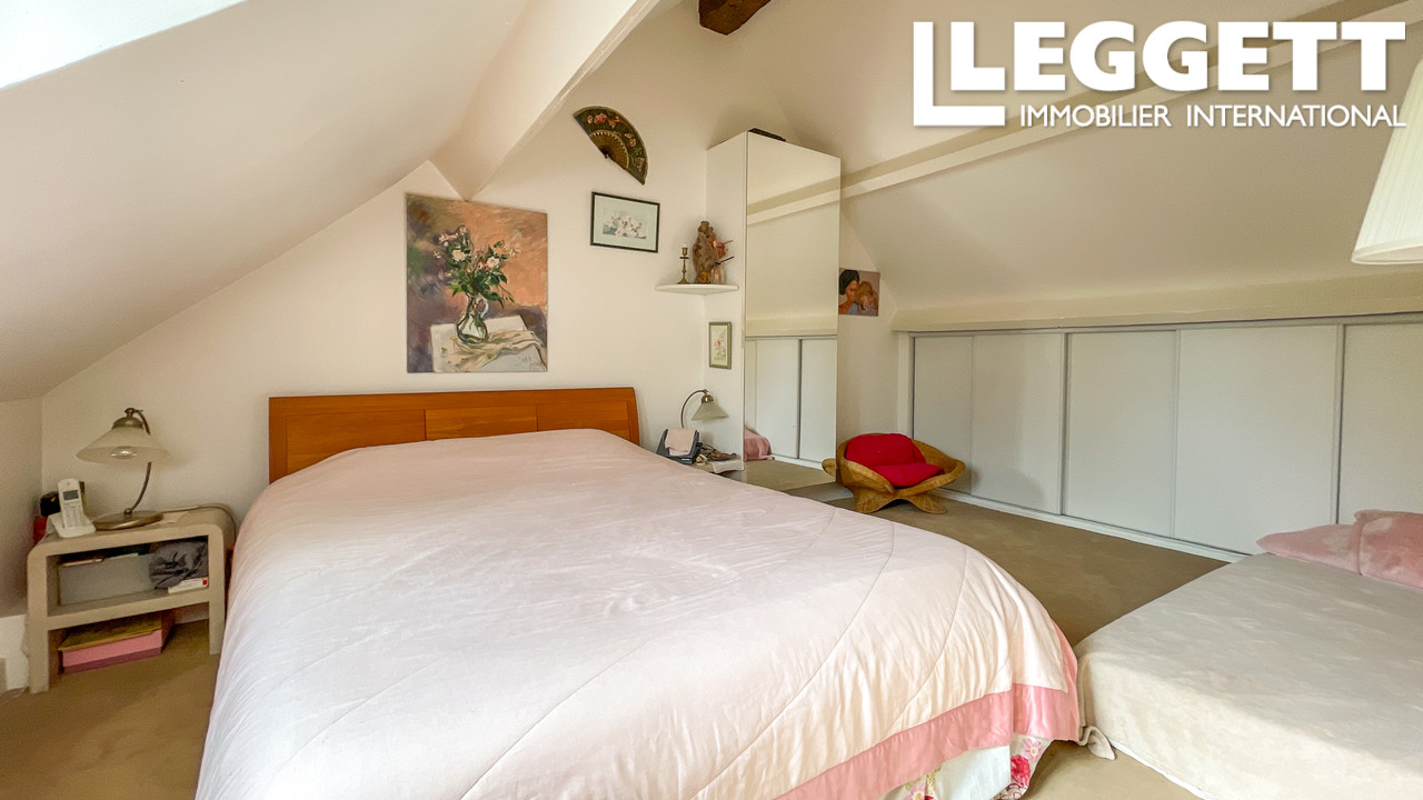 À l'étage : chambre confortable avec rangements intégrés et salle de bains complète avec WC. Un second escalier dessert une mezzanine polyvalente, parfaite comme deuxième chambre ou espace bureau.