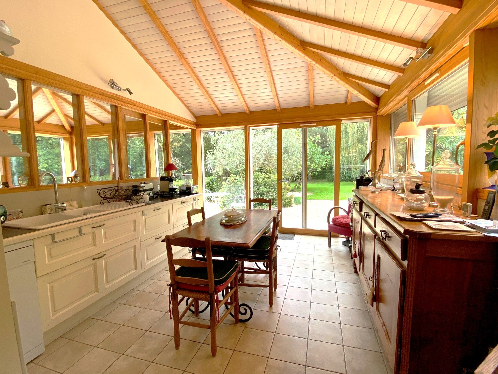 Nichée au coeur d'un parc joliment paysager et arboré de 2800 m2, venez découvrir cette chaleureuse propriété de 242m2