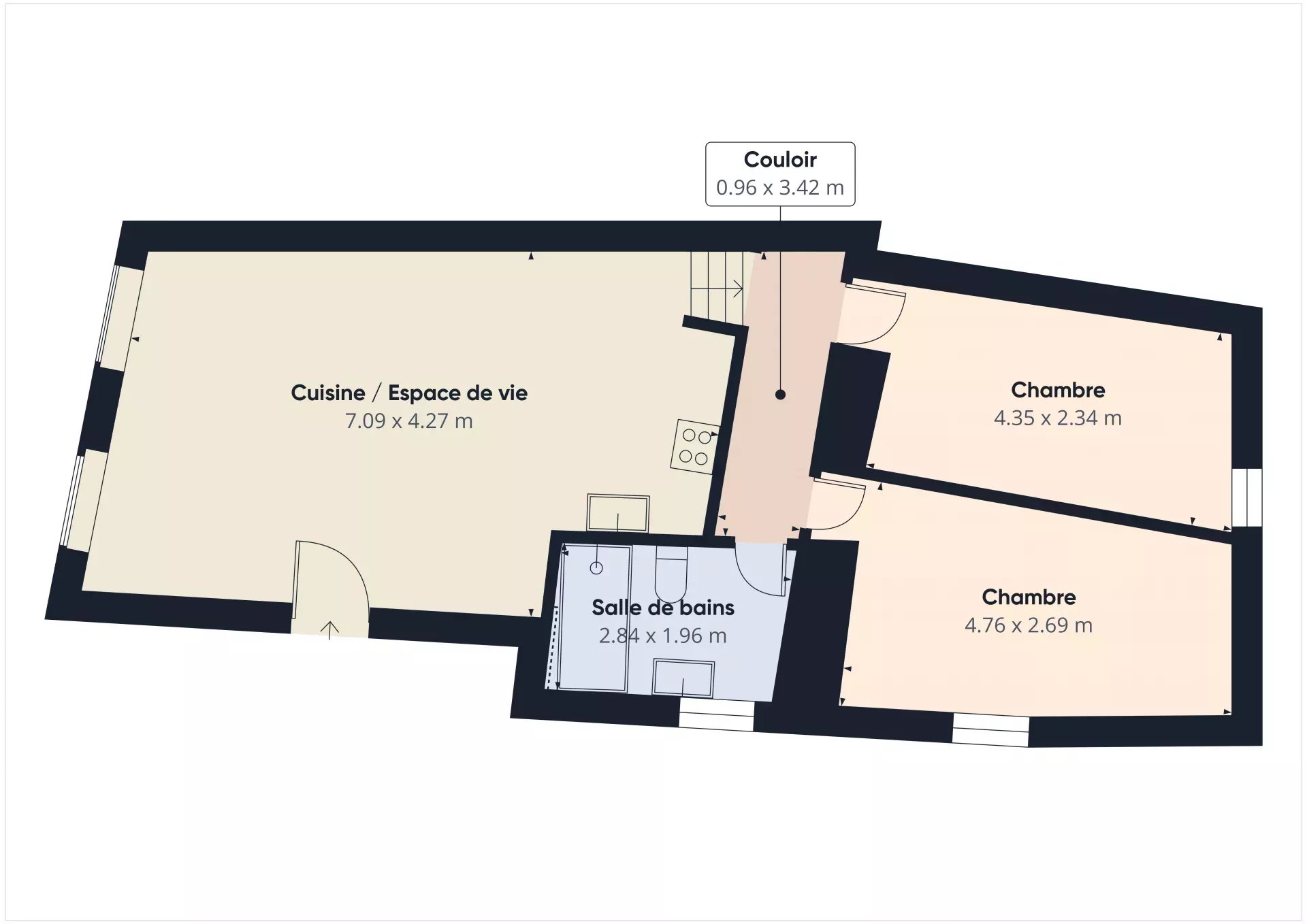 Une agréable pièce de vie de 27m² (séjour/cuisine)