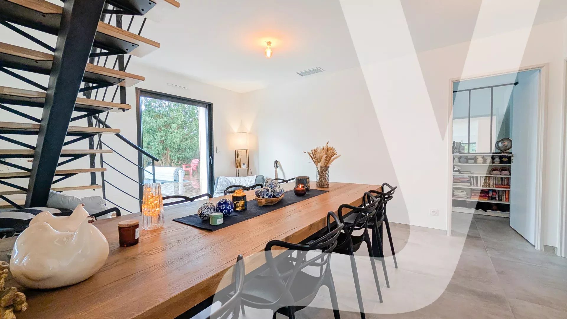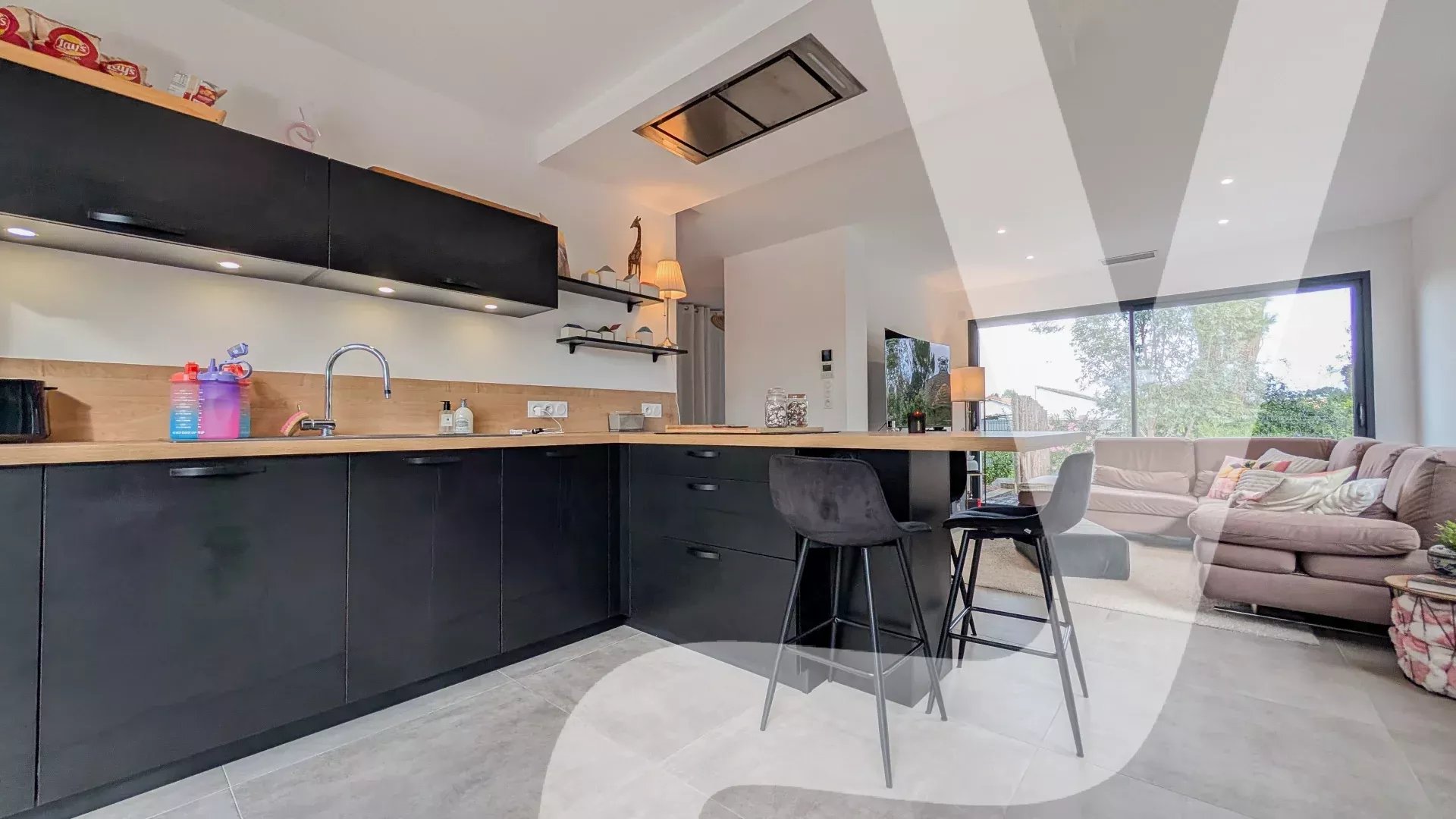 Spacieuse pièce de vie lumineuse avec salon, séjour et cuisine ouverte