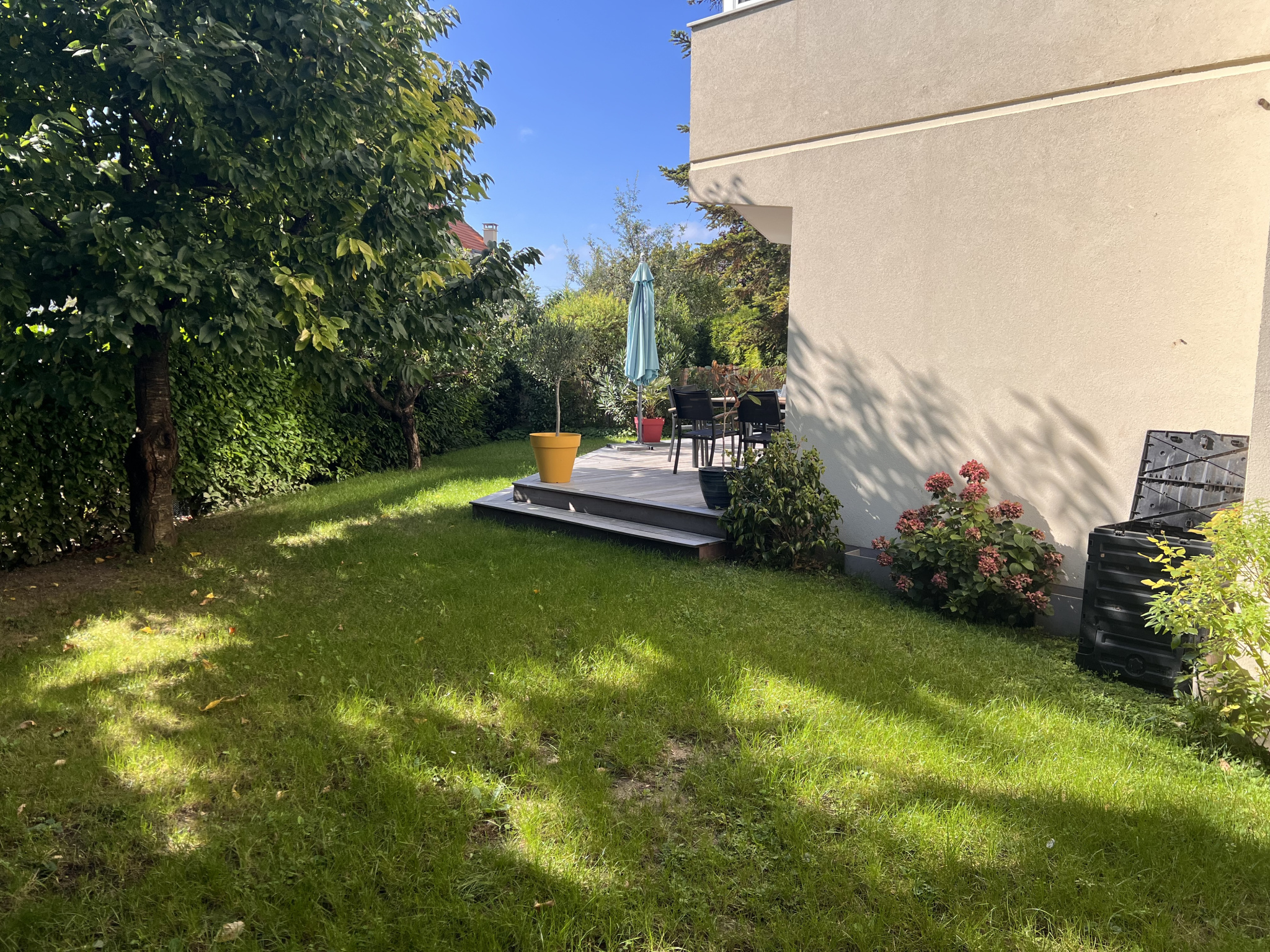 Chatou limite Montesson, à proximité des commerces et des écoles, petite résidence de standing parfaitement entretenue, au calme et sécurisée. Vaste appartement 3 pièces en rez-de-jardin, composé d'une entrée, cuisine ouverte équipée, séjour lumineux sur terrasse de 35 m2, 2 chambres, dont une suite parentale avec salle d'eau, salle de bains, nombreux rangements.Très bon état général. Jardin de 170 m2. Parking et cave en sous-sol. Chauffage individuel au gaz. Ravalement récent.