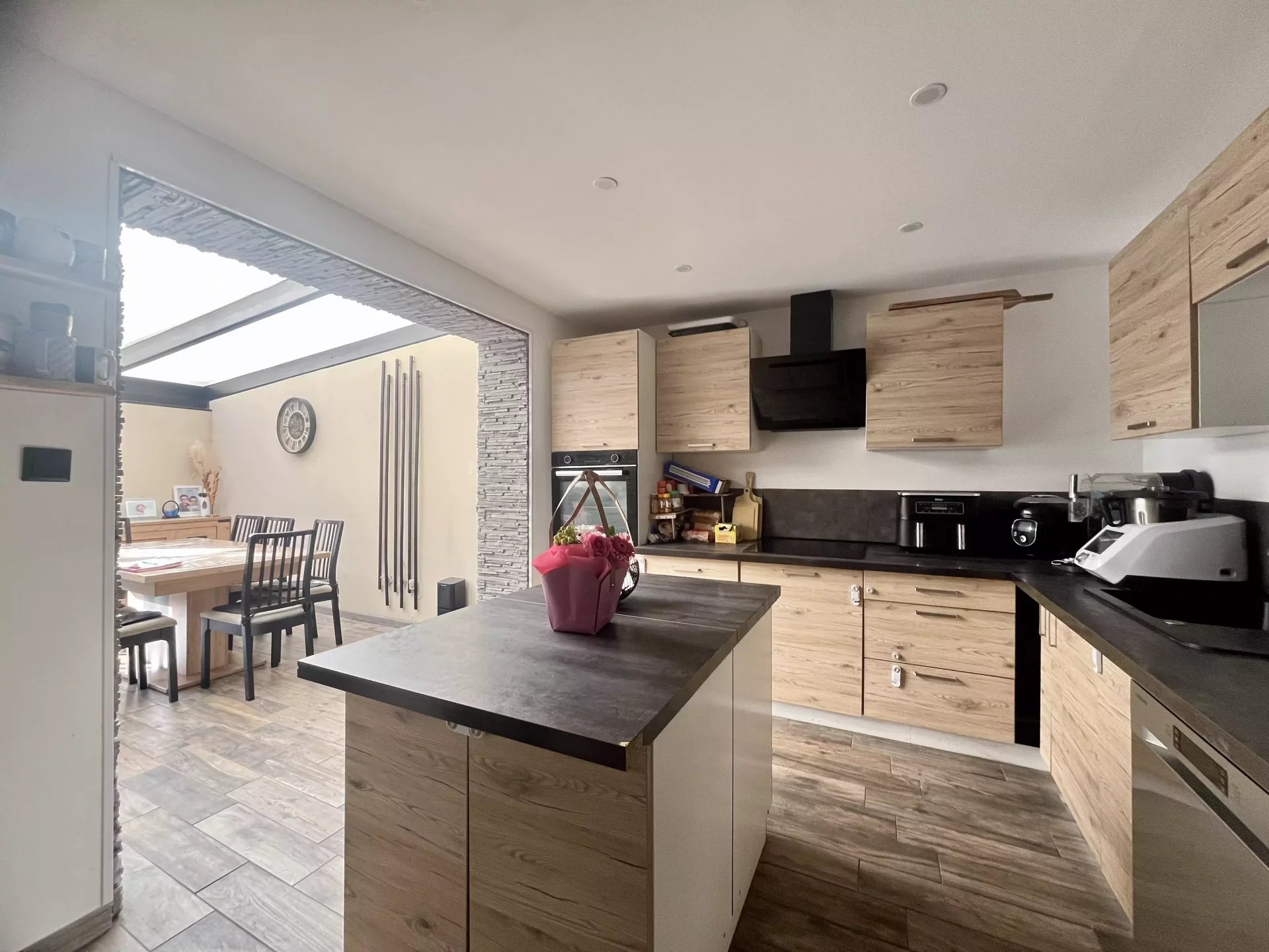 Maison familiale, fonctionnelle, disposant d'une entrée, d'une cuisine ouverte sur la pièce de vie donnant accès à une terrasse et un jardin.