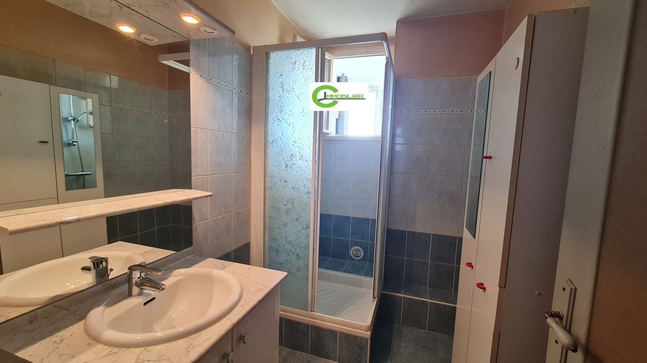 La grande entrée avec placards et penderie distribue la cuisine séparée, le séjour et les deux chambres, wc indépendant et salle d'eau.