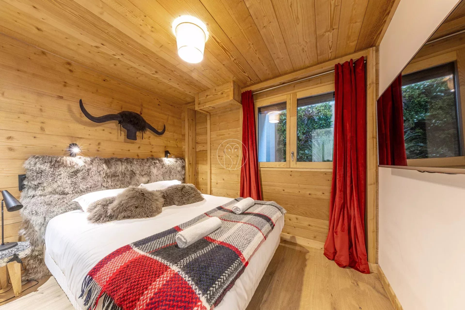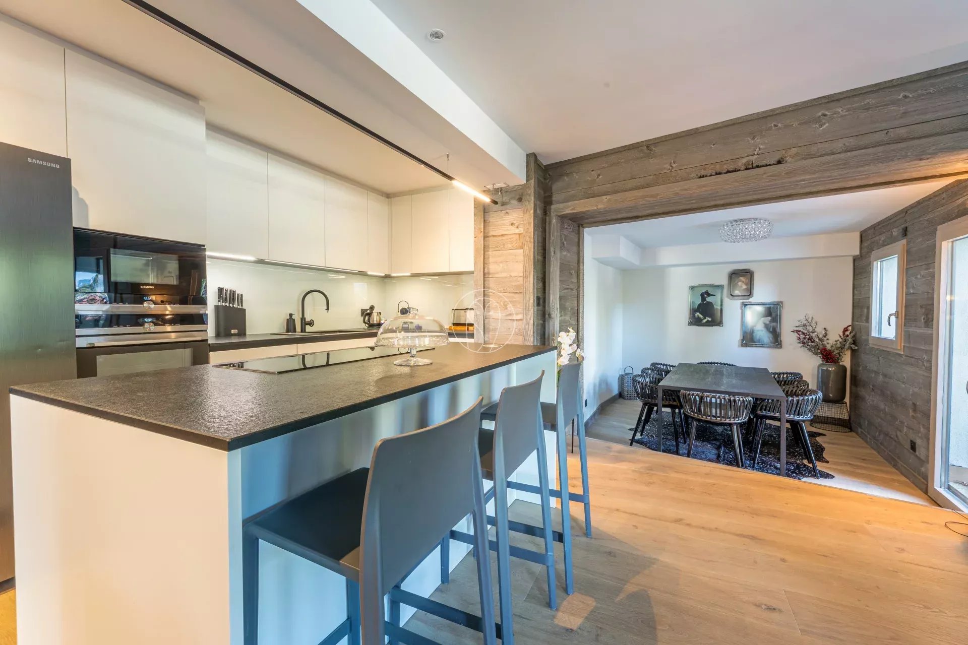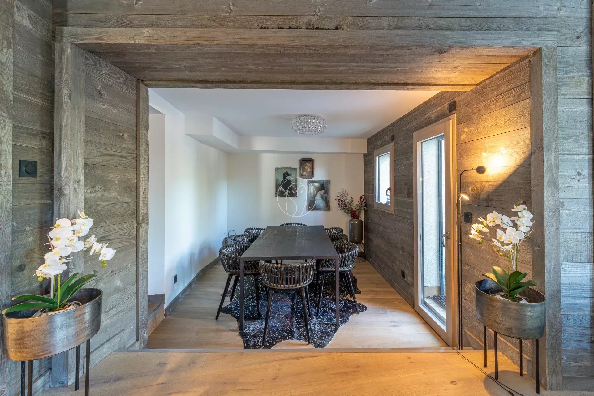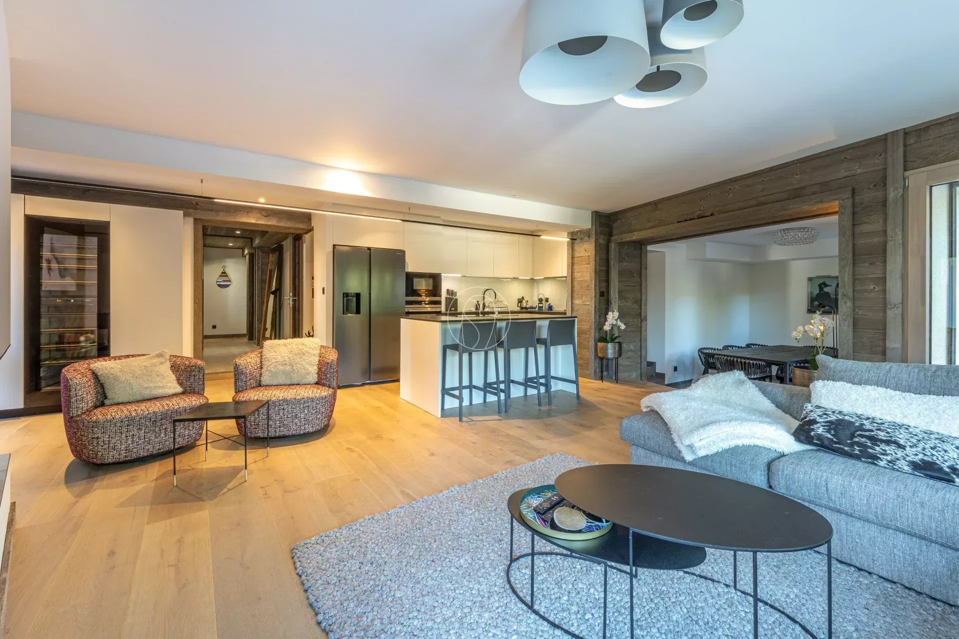 Appartement au rez-de-jardin d'une petite copropriété à deux pas du cœur du village de Megève, un ancien chalet de l'architecte Henry Jacques Le Même entièrement réhabilité.