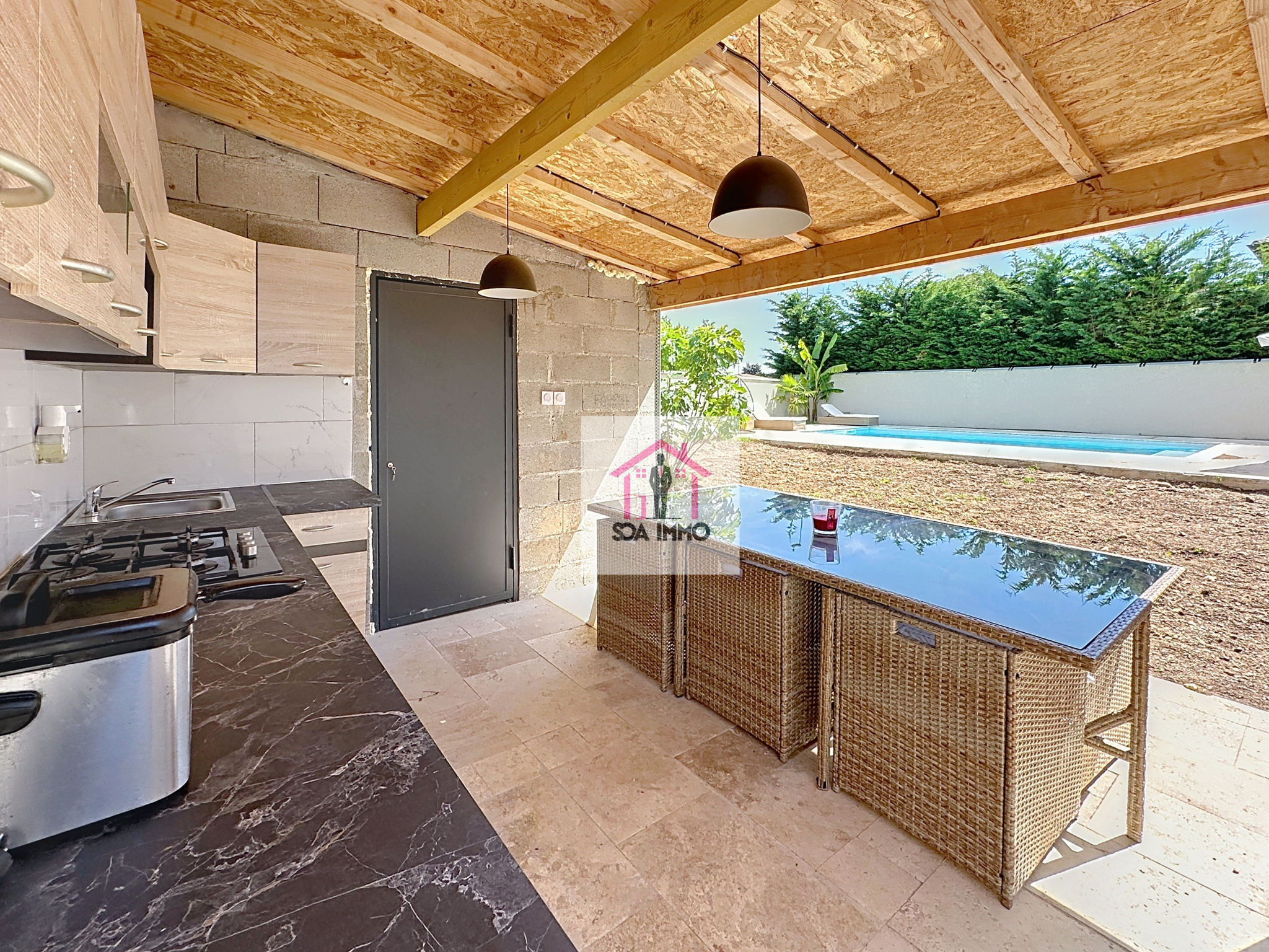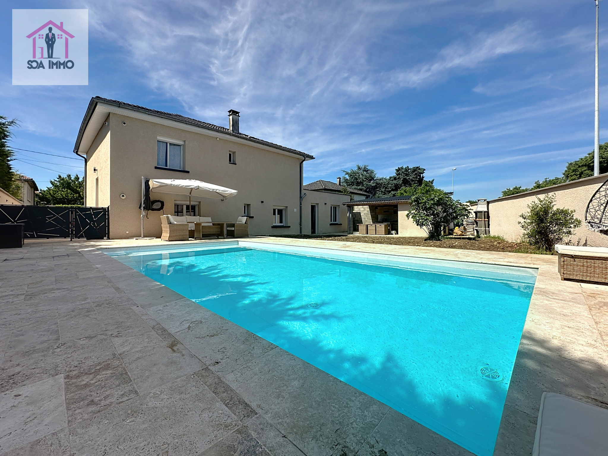 À l'extérieur, l'été s'annonce doux et joyeux grâce à sa superbe piscine 8x4 mètres au sel, invitant à la baignade et à la détente. Vous profiterez également d'une cuisine d'été et d'un espace terrasse sans aucun vis-à-vis!