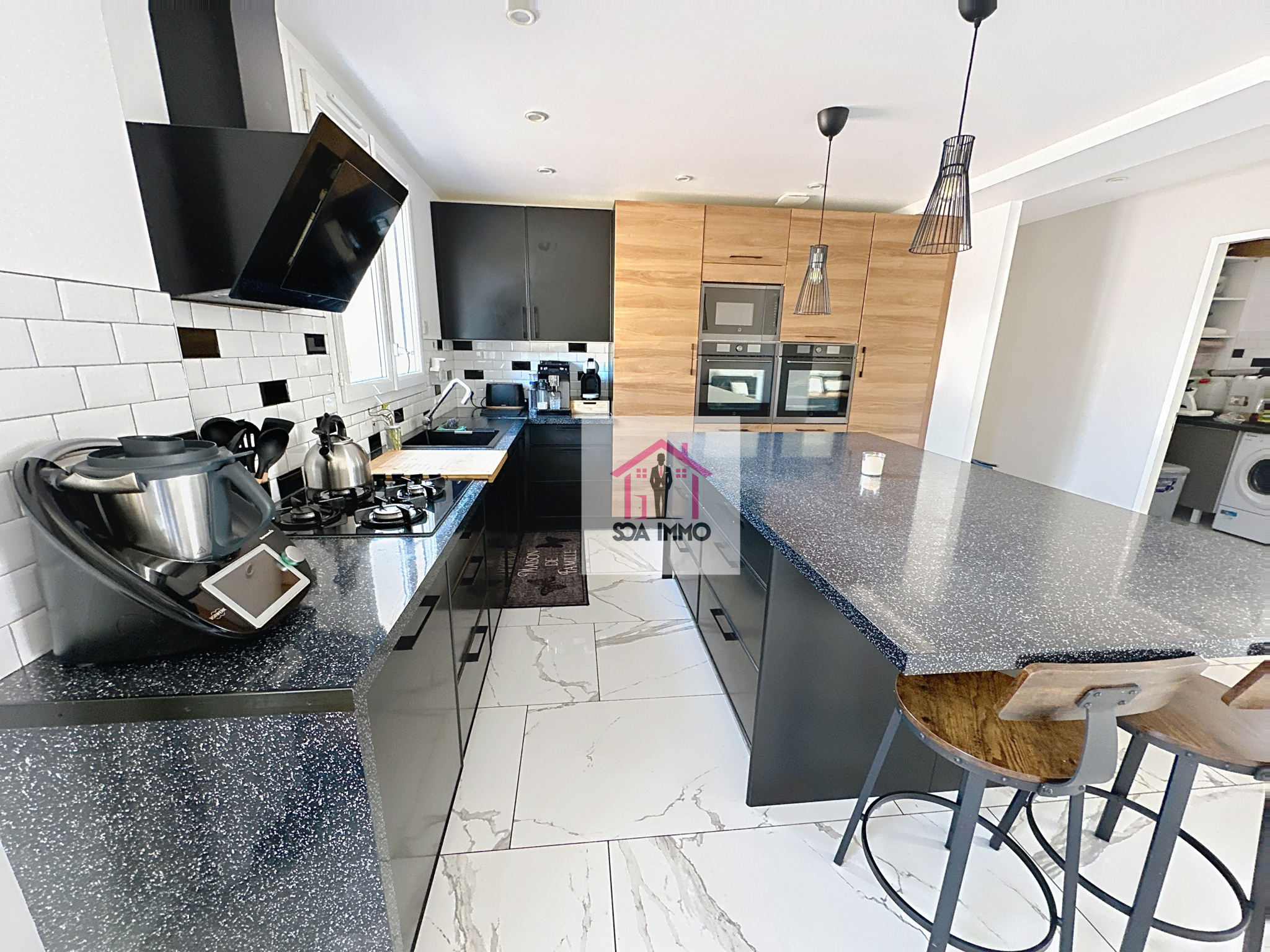 L'espace de vie est un atout majeur : un vaste salon/séjour de 40 m2 vous accueille, avec sa cuisine entièrement équipée et aménagée grâce à son ilot central et sa buanderie attenante.