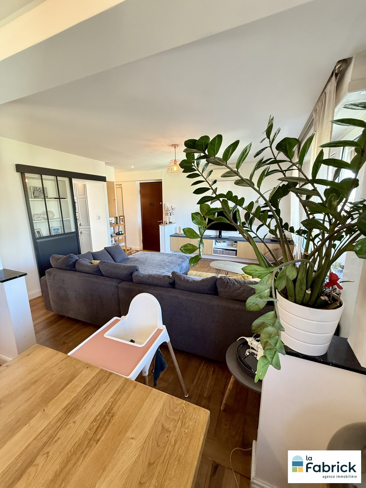 Un grand salon/séjour lumineux avec accès direct à un balcon convivial